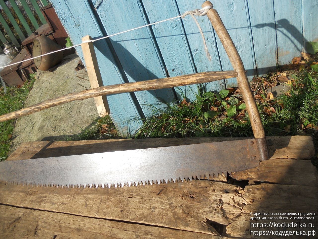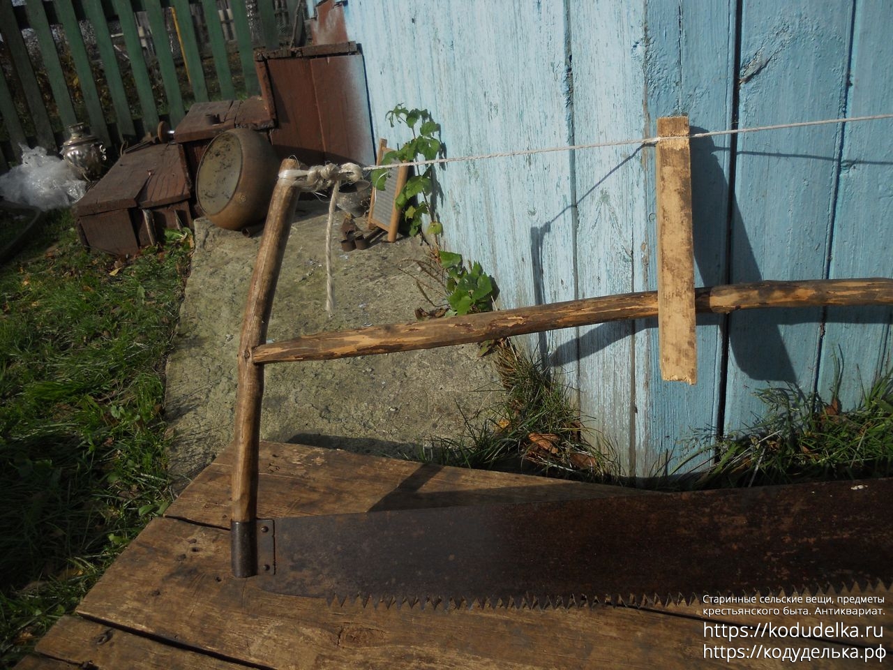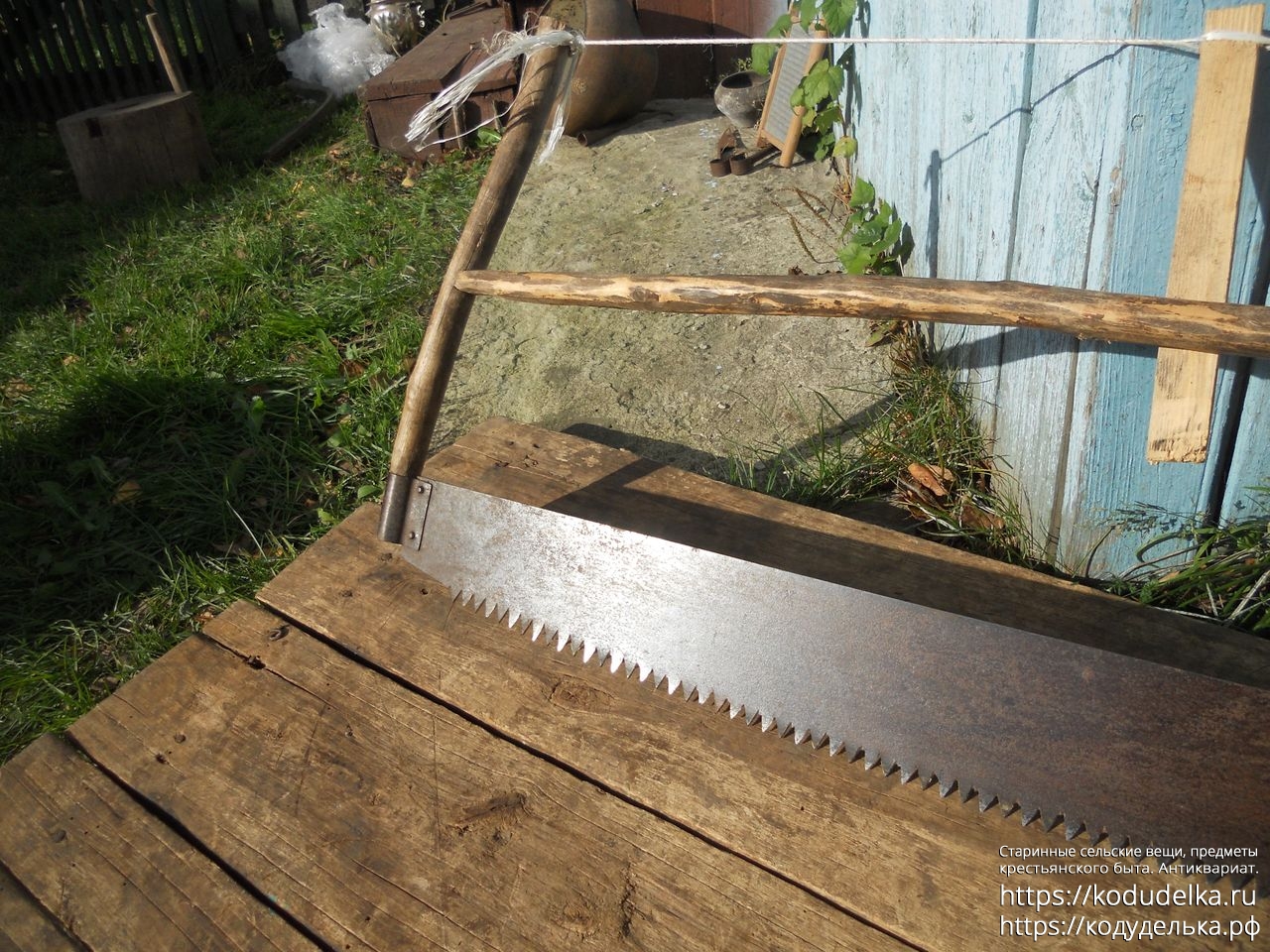Двухручная пила, переделанная для работы «в одного», по конструкции, аналогичной лучковой пиле.