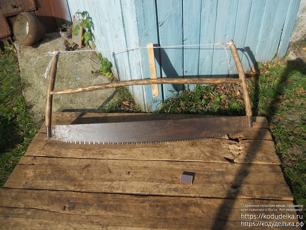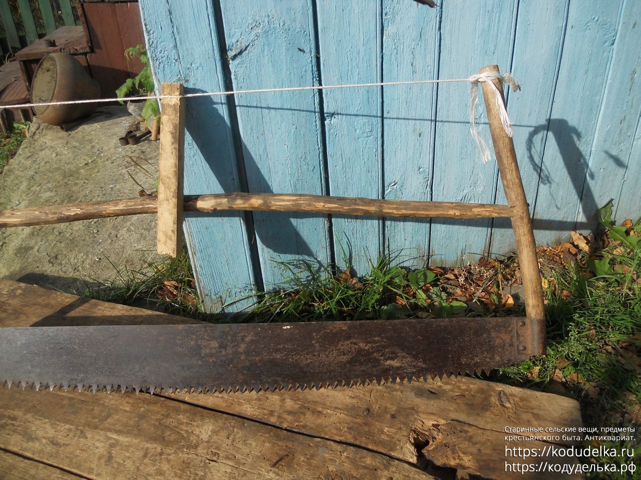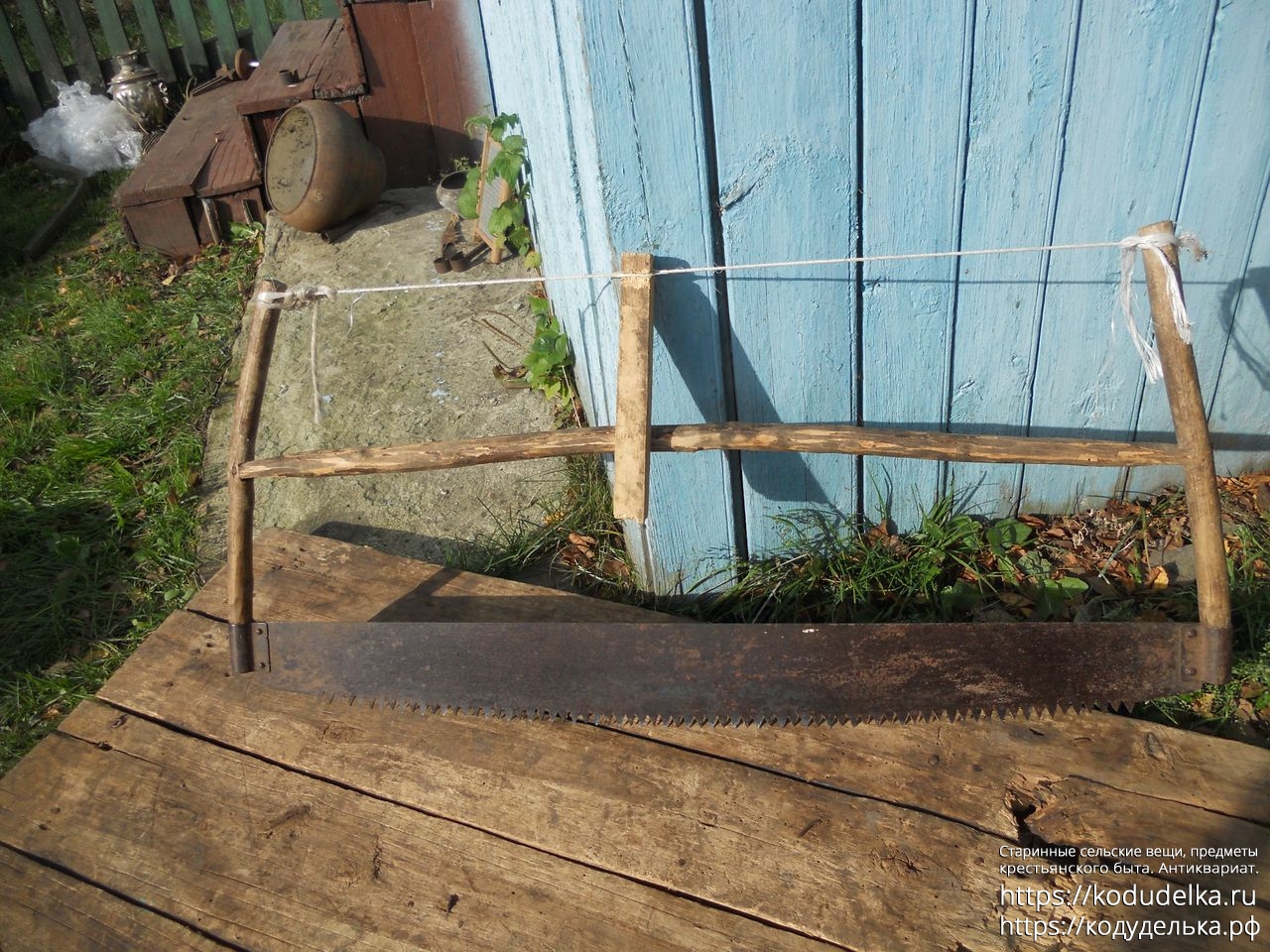 Двухручная пила, переделанная для работы «в одного», по конструкции, аналогичной лучковой пиле.