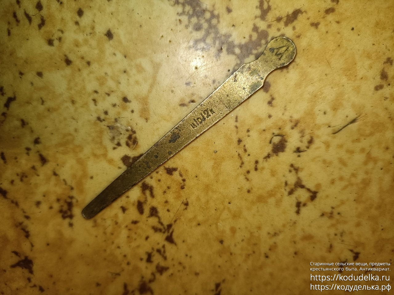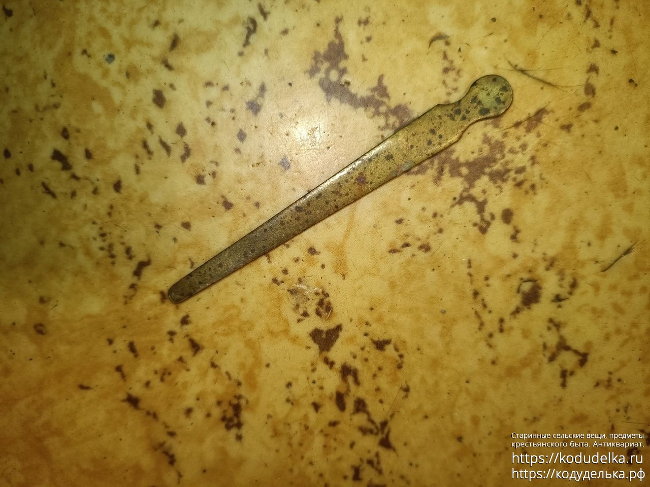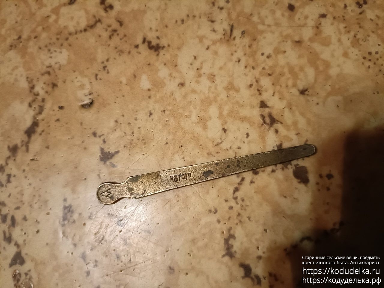 Поиск по фото в интернете ничего не выдаёт — ножи только бронзовые из былых веков, можно было б поверить — но патина явно не та, да и цена отбита по «советскому» образцу, а не царских времён. Да и оба конца — явно полукруглые.