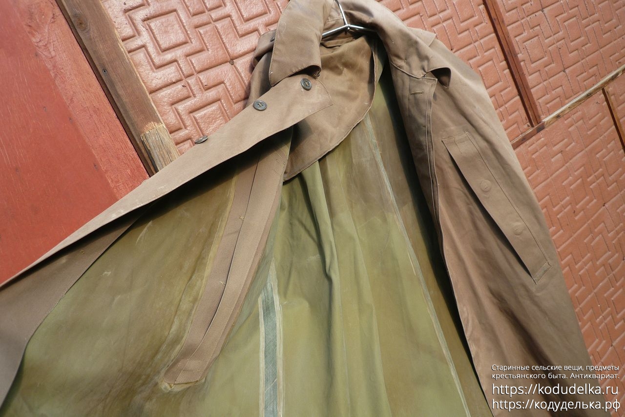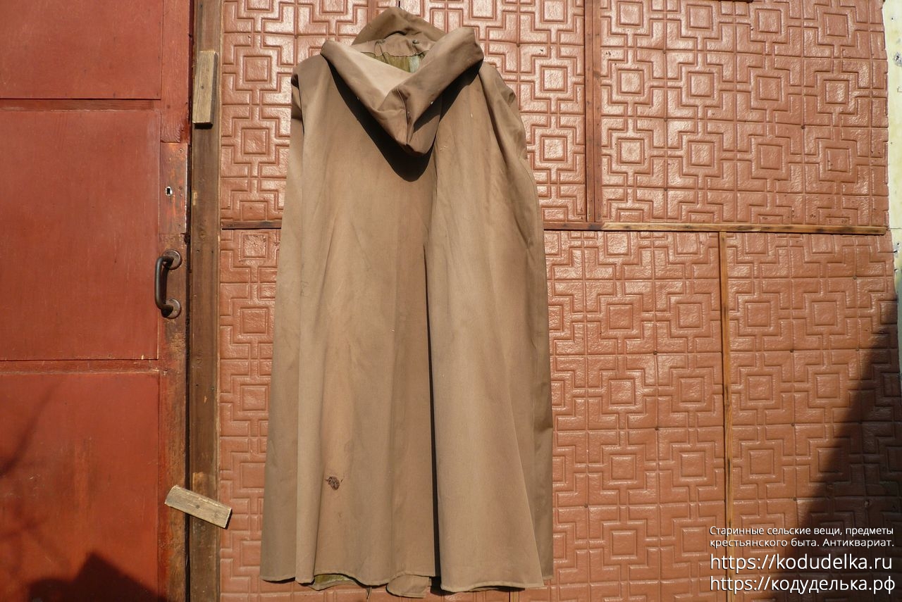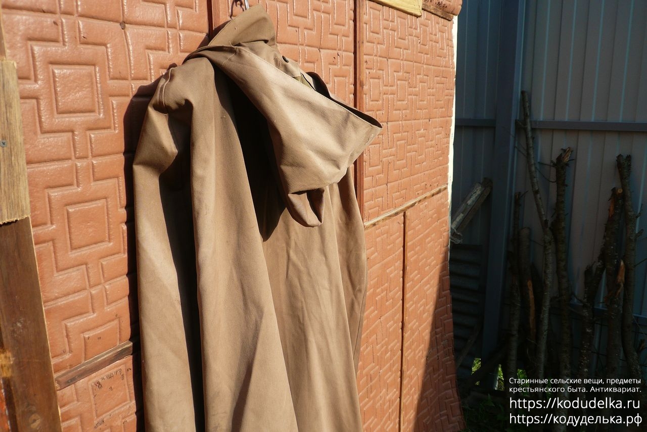 Плащ б/у, состояние брезента — без гарантии использования по прямому назначению (если брать не для краткой реконструкции, а на рыбалку, охоту и т.п.)