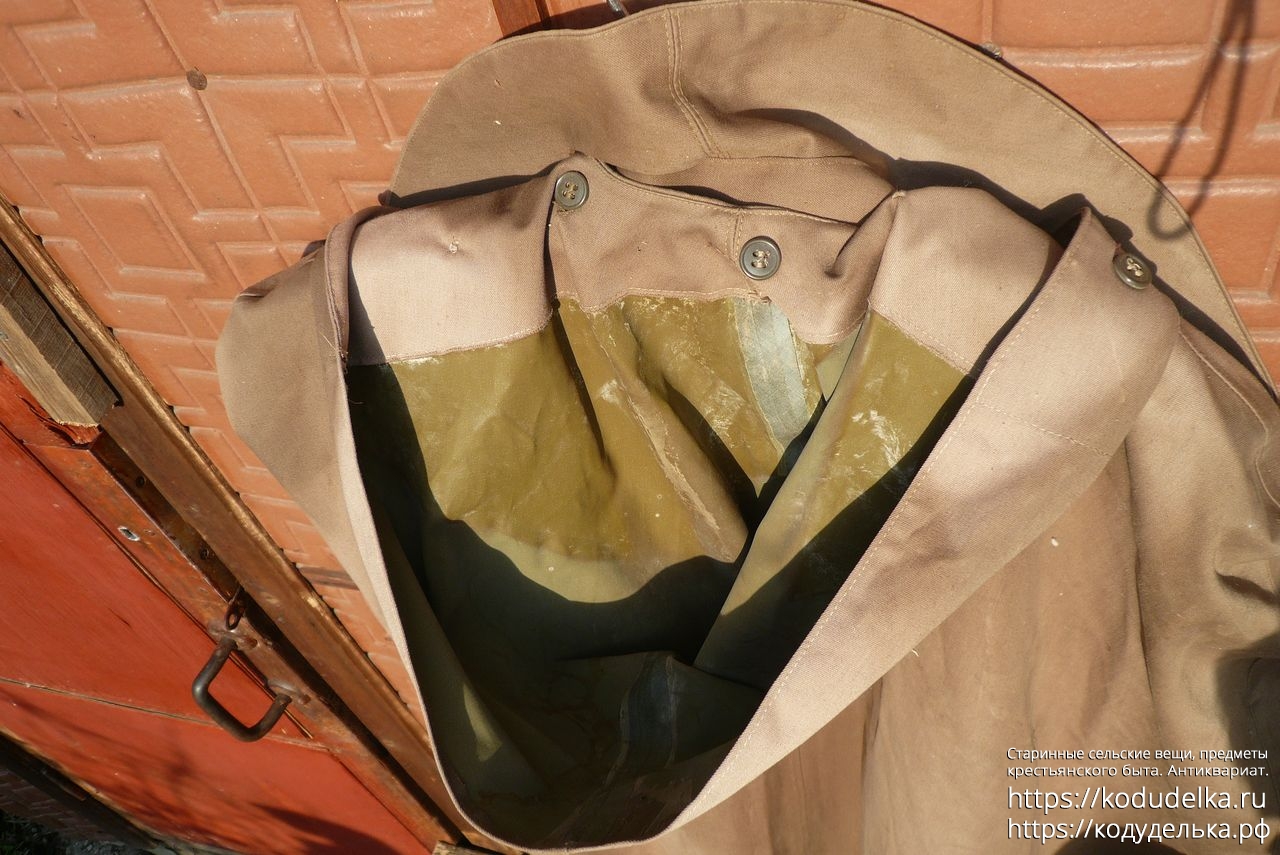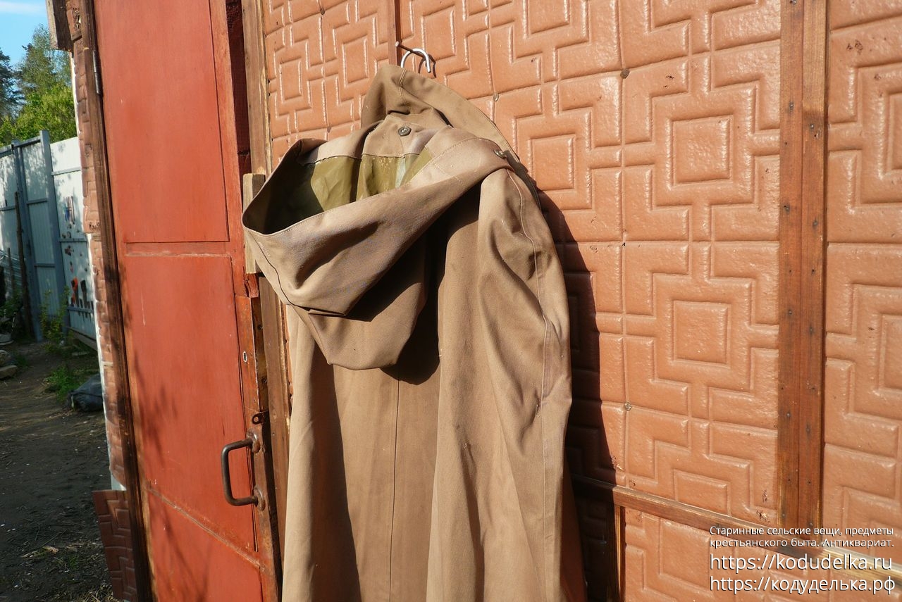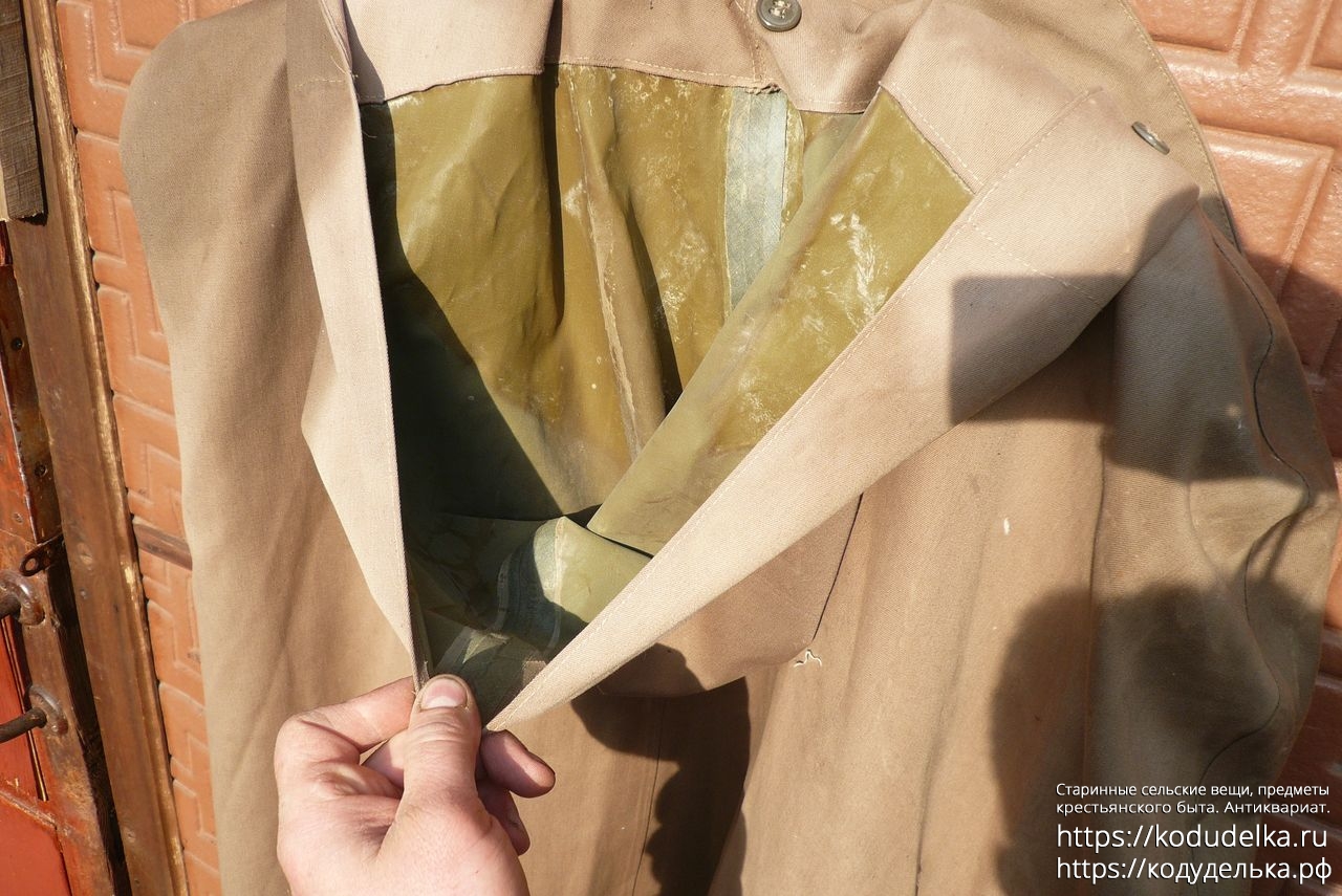 Плащ б/у, состояние брезента — без гарантии использования по прямому назначению (если брать не для краткой реконструкции, а на рыбалку, охоту и т.п.)