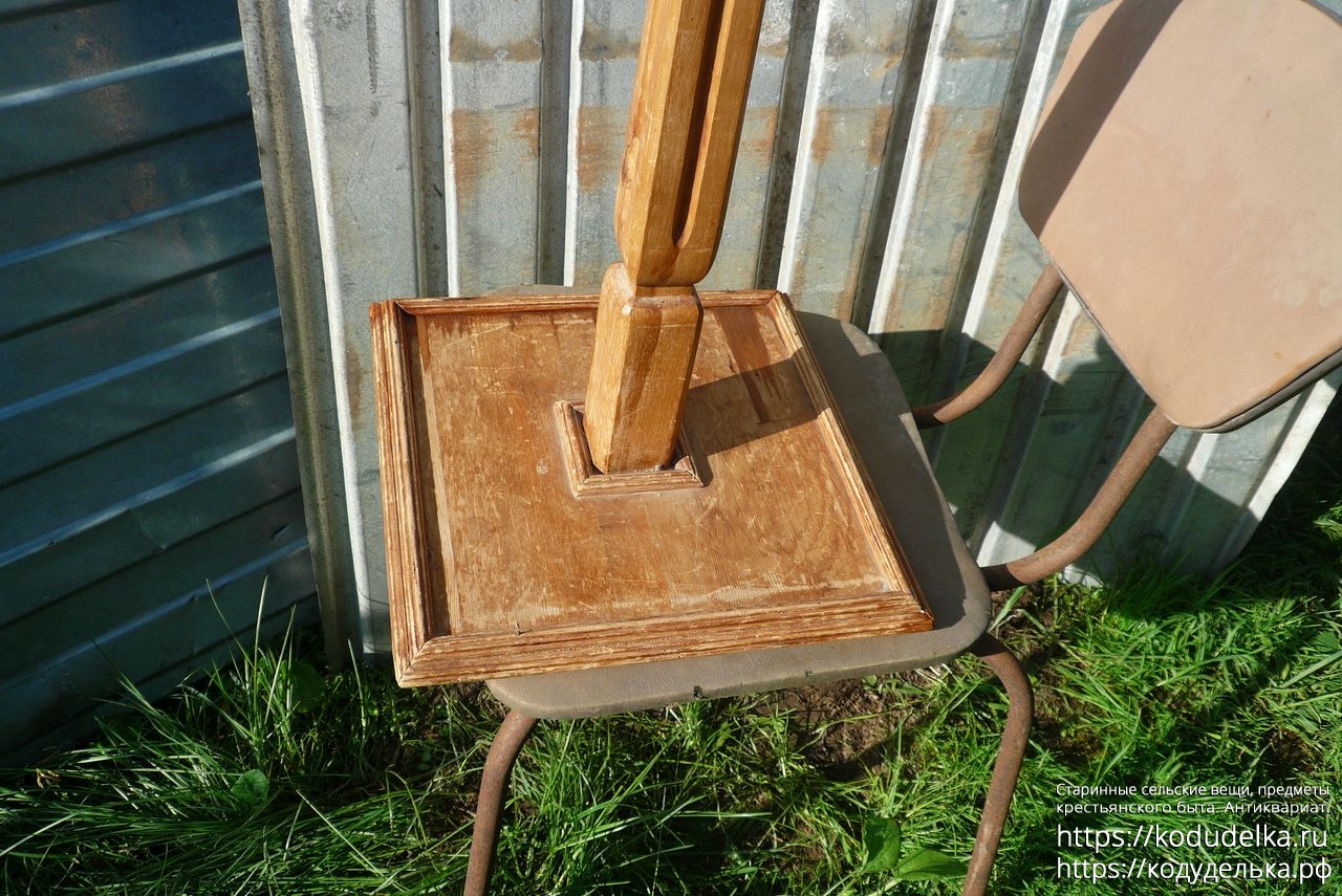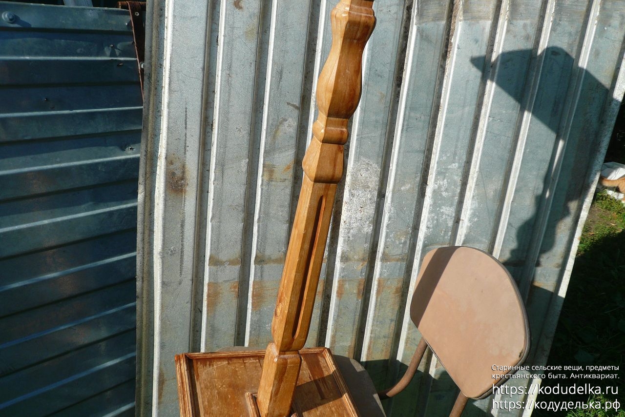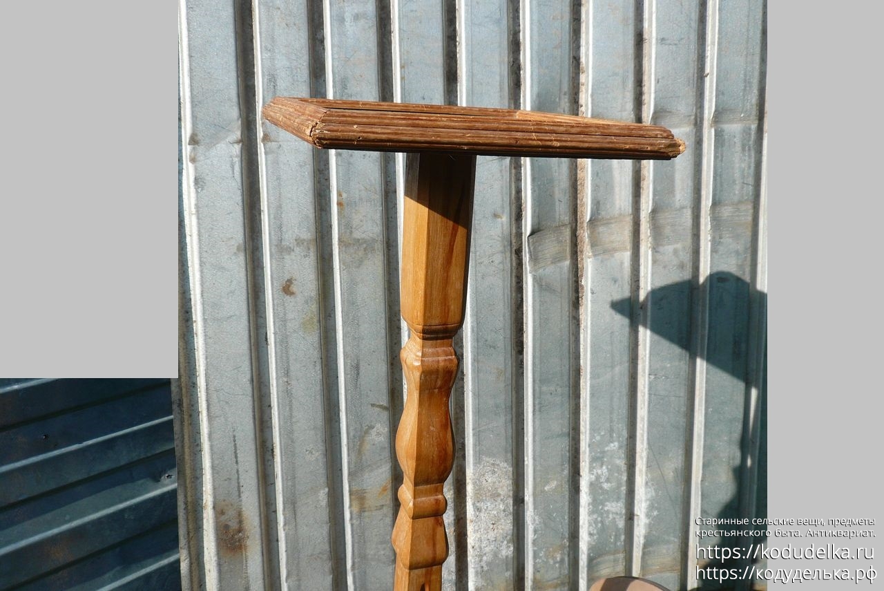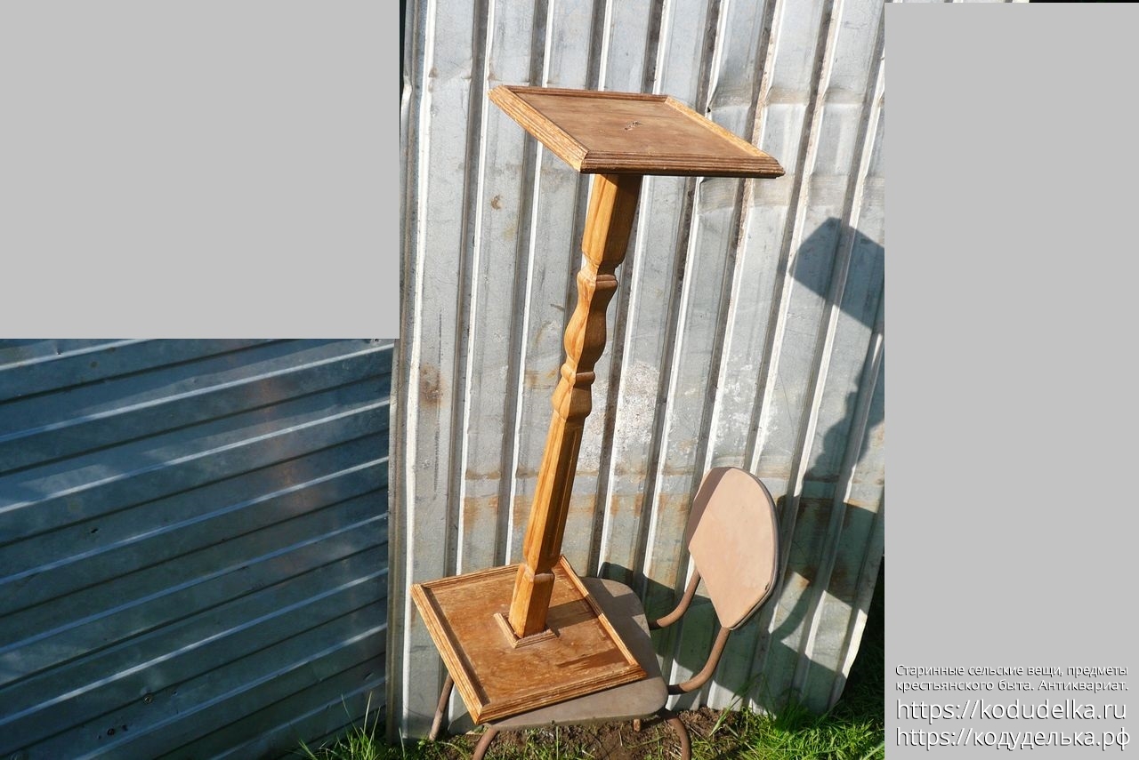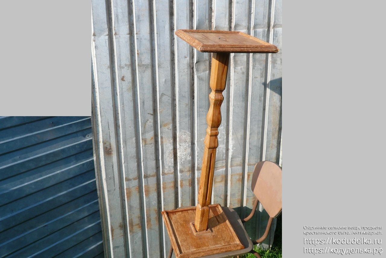 Сама стойка — массив дерева, площадка и подставка вроде бы тоже (?), они отделаны деревянными рифлёными штапиками.