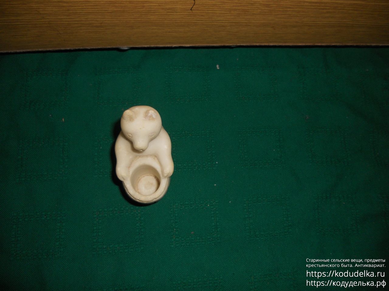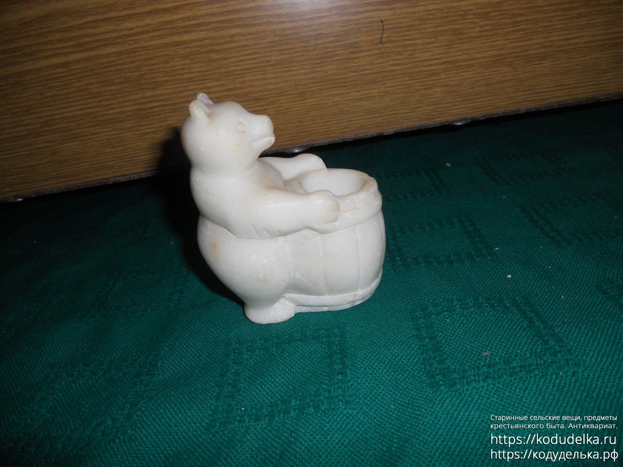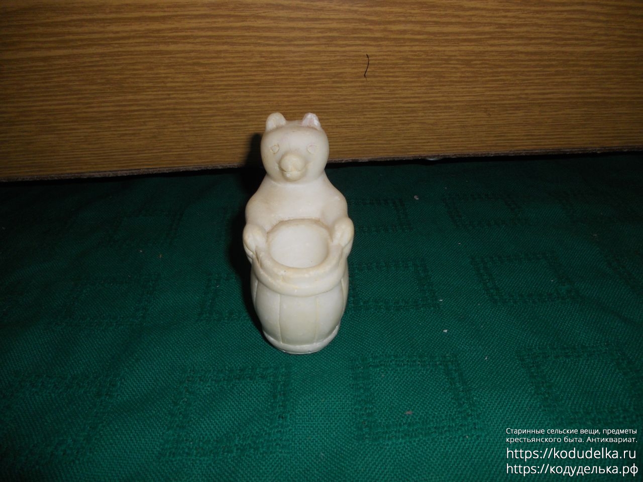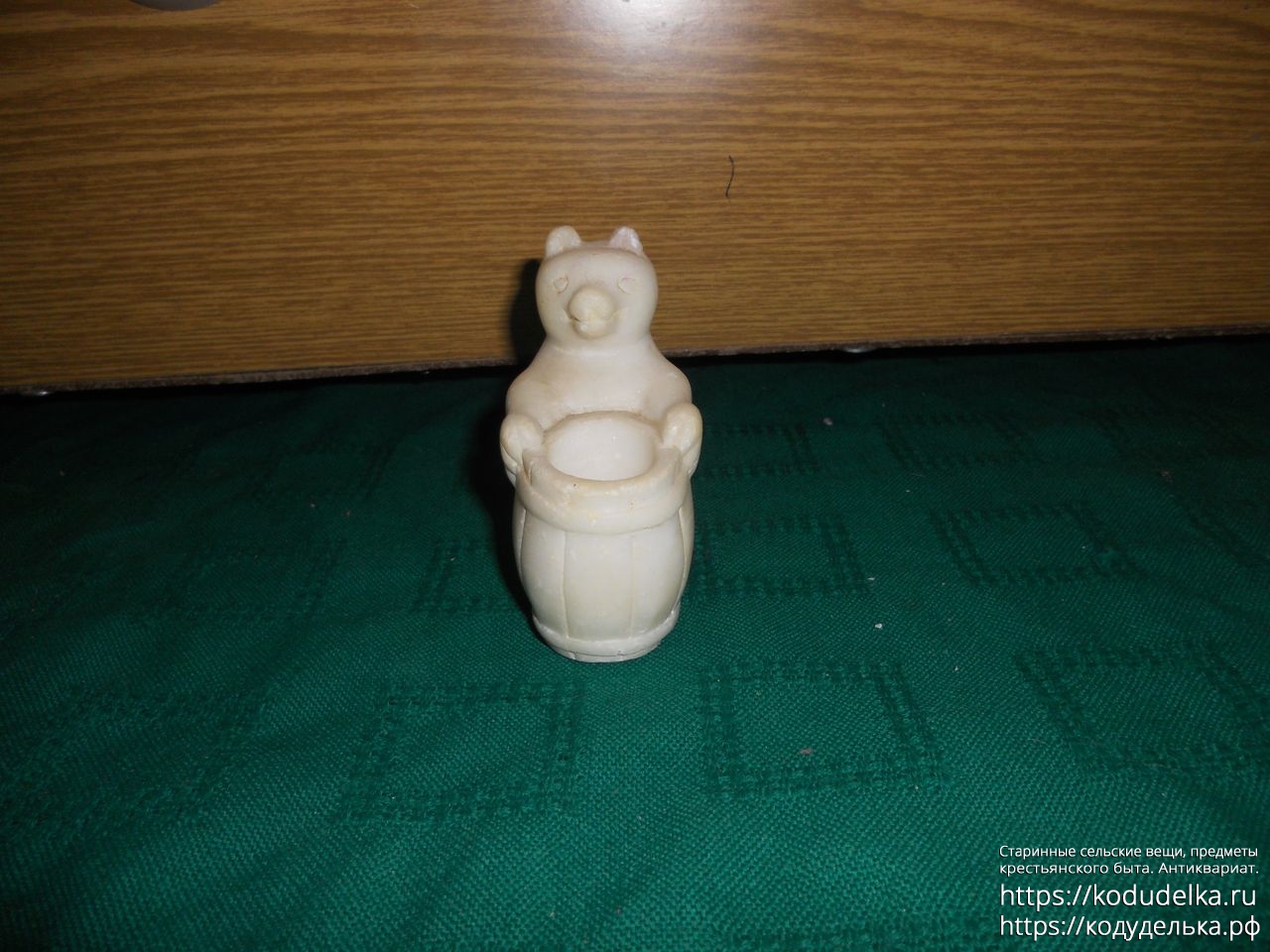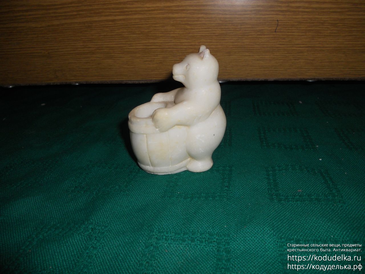 Фигурка, статуэтка — медведь с бочкой, подсвечник (ещё варианты — солонка, перечница, либо как подставка для мелких предметов (но точно не карандашница, слишком маленькая для неё).