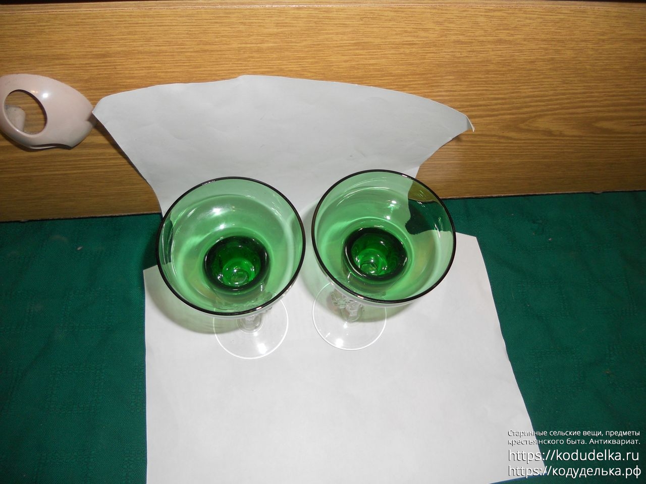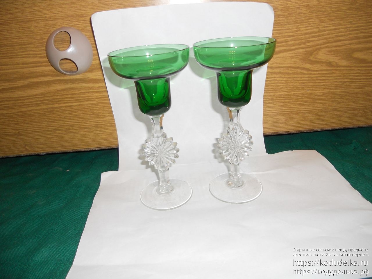Доброго! Ставлю 99%, что зеленое — не просто зеленое. У знакомого в коллекции есть аналогичное сочетание двух стекол в одном предмете, в уф свете все сразу видно.