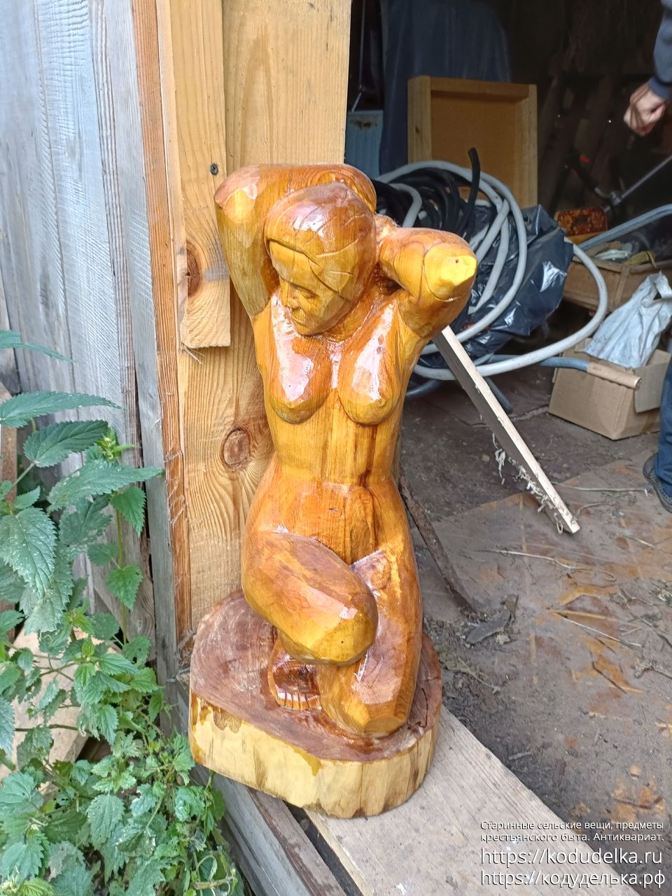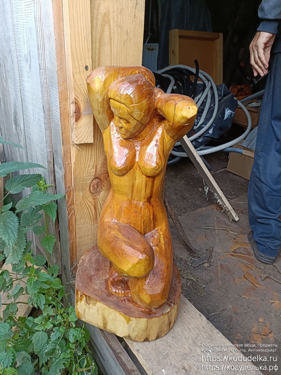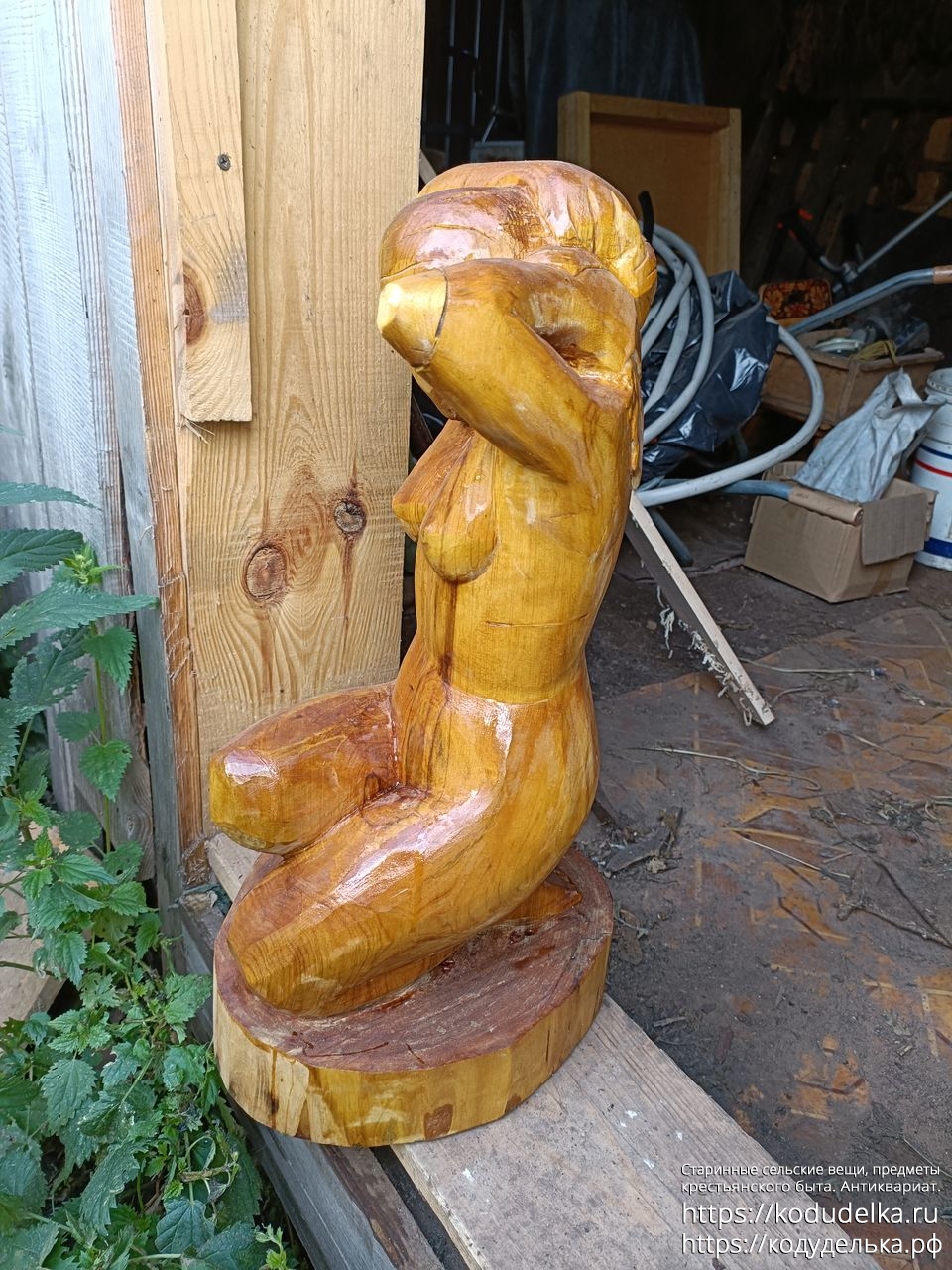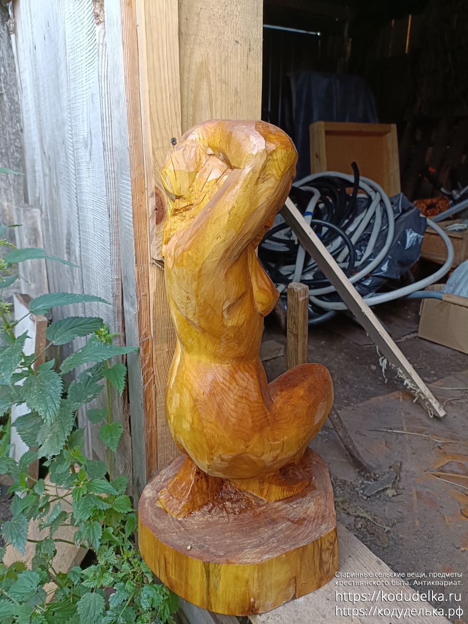 Резная деревянная фигура «обнаженная женщина в полуприседе)))))))», выполнена в период зима 23-зима/весна 24 самобытными художниками-резчиками, в стиле на стыке реализма и примитивизма.