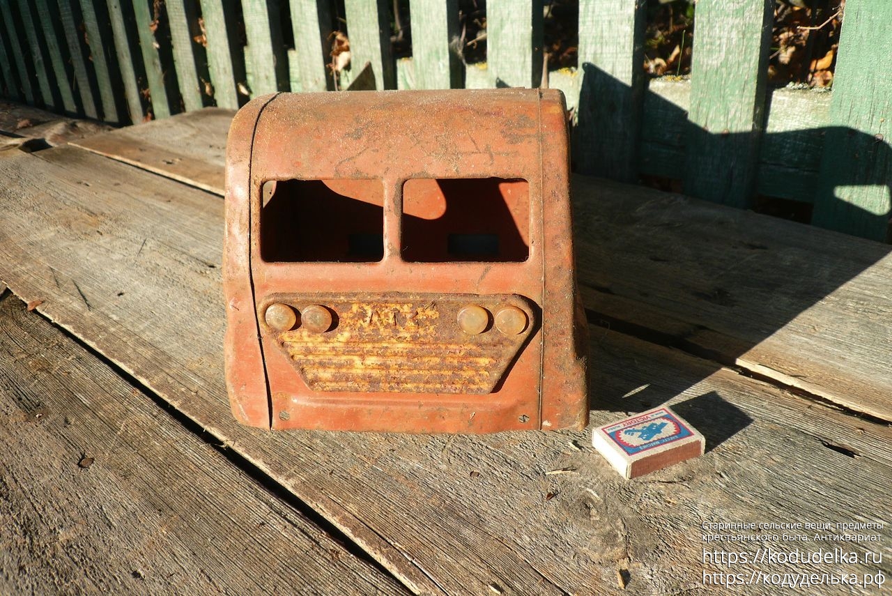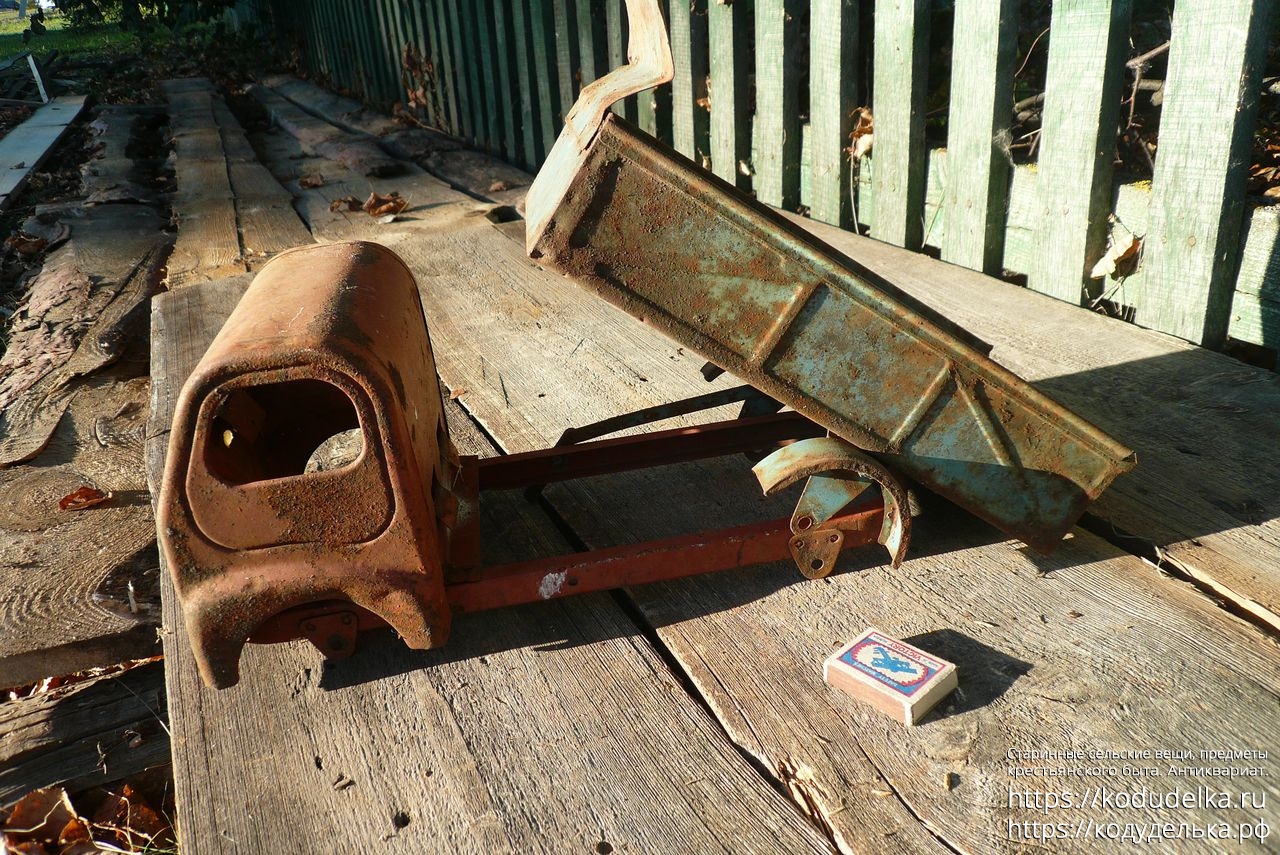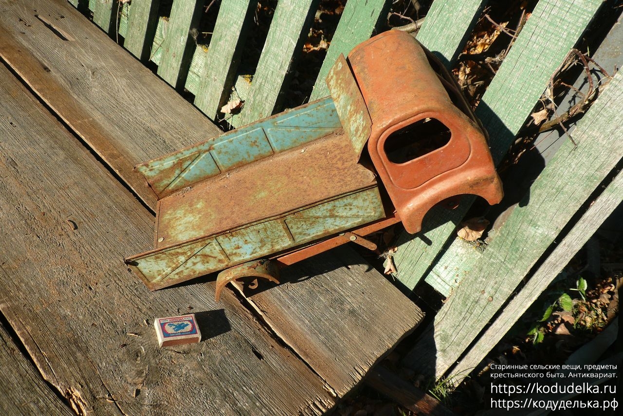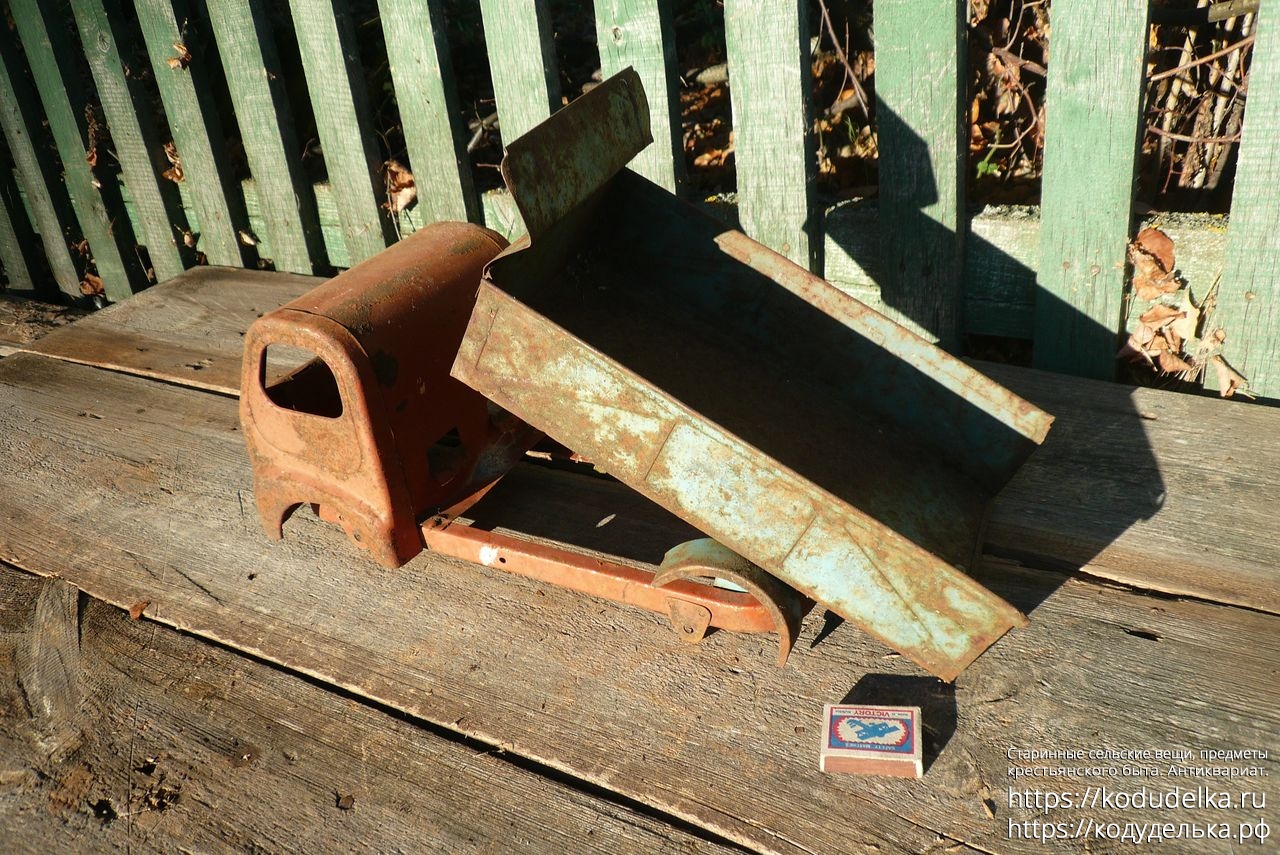 Большая советская жестяная игрушка, игрушечная машина — самосвал, грузовик из жести, на кабине спереди клеймо ЛТЗ.