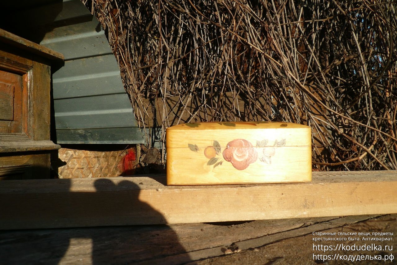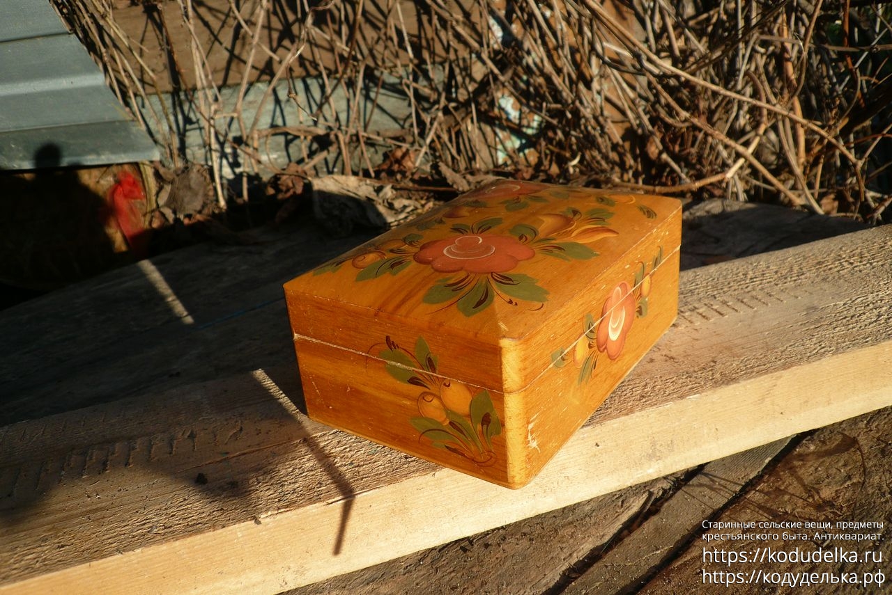 С цветочной росписью, рисунок цветы. Есть версия, что это шкатулка Восток