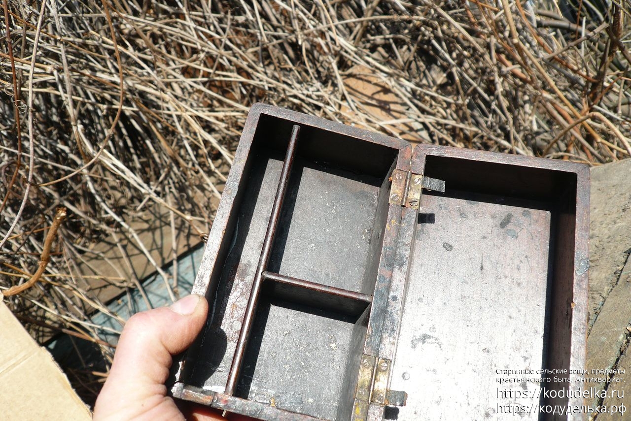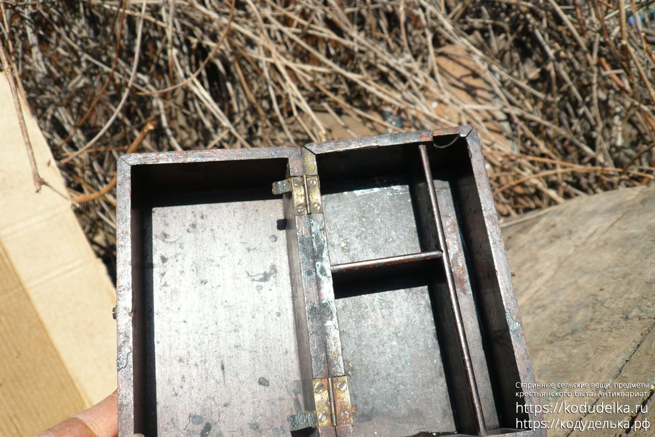 Запирается на петельку (пробой) и крючок, и тот и то — латунные.