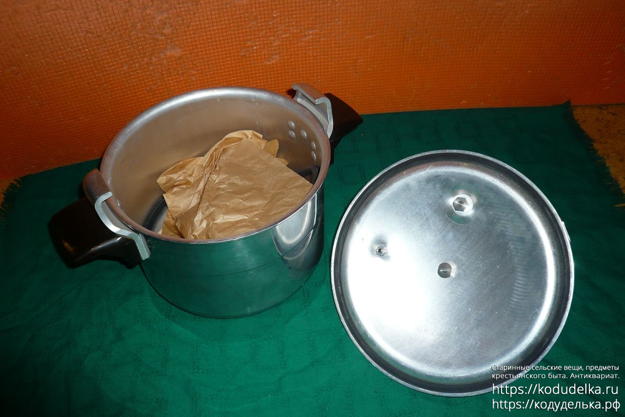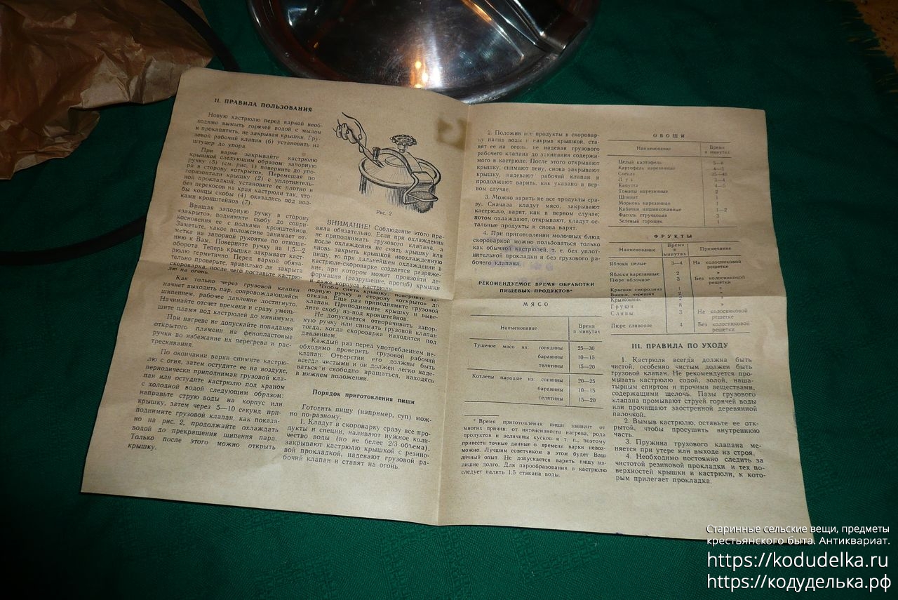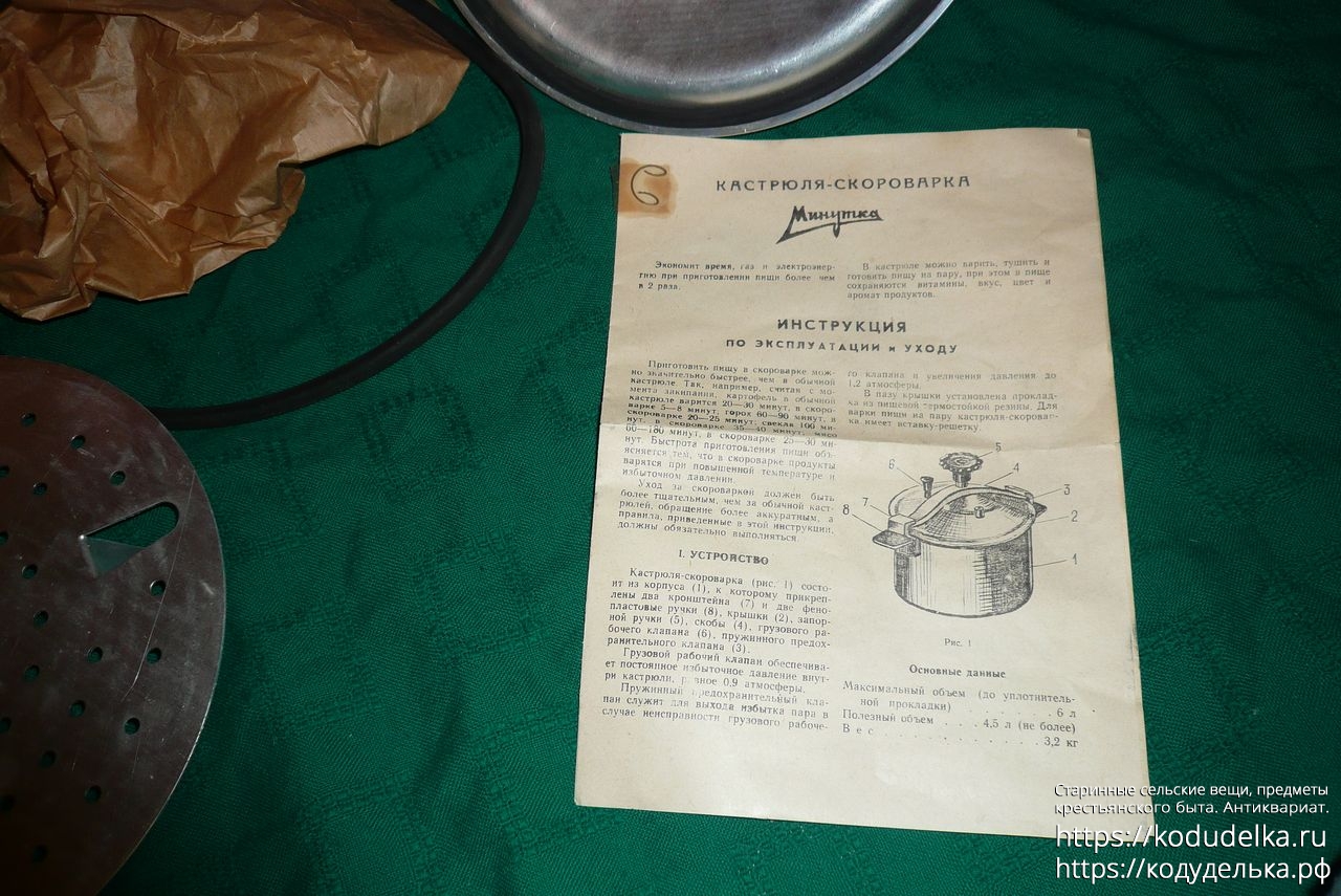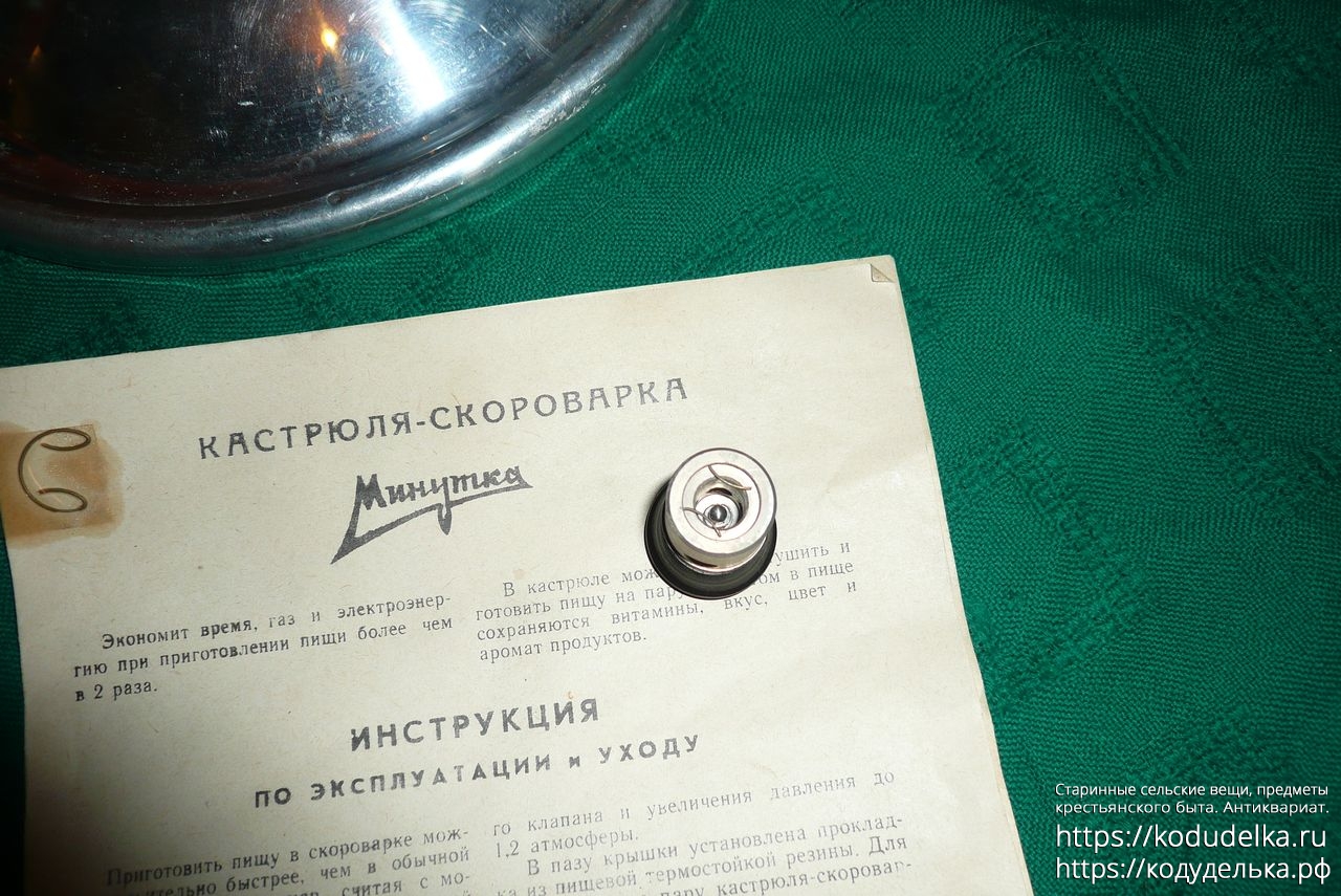 Комплектация: сама кастрюля с крышкой и ручками + клапан с пружинкой + подставка для пароварки, инструкция + запасная уплотнительная резинка
