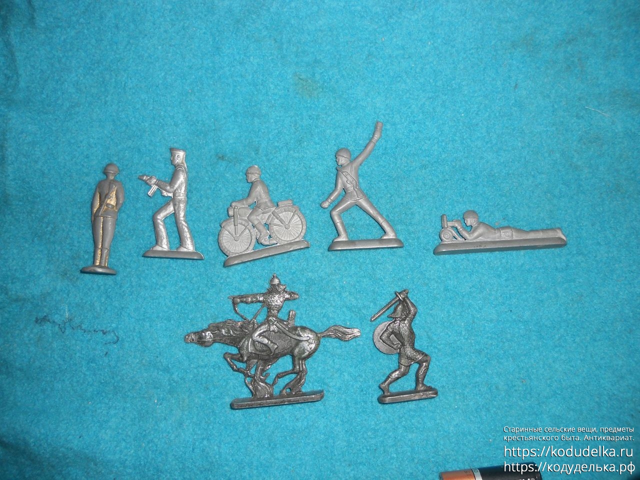Все фигурки (кроме оловянных солдатиков) — пластик (пластмасса)! (может еще 2-3 шт. резиновые)
