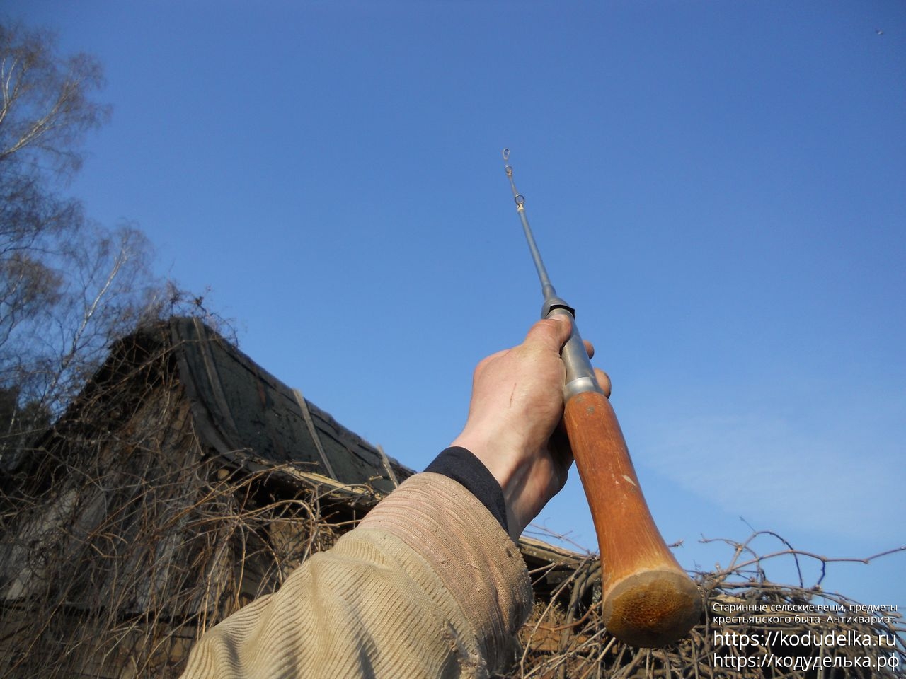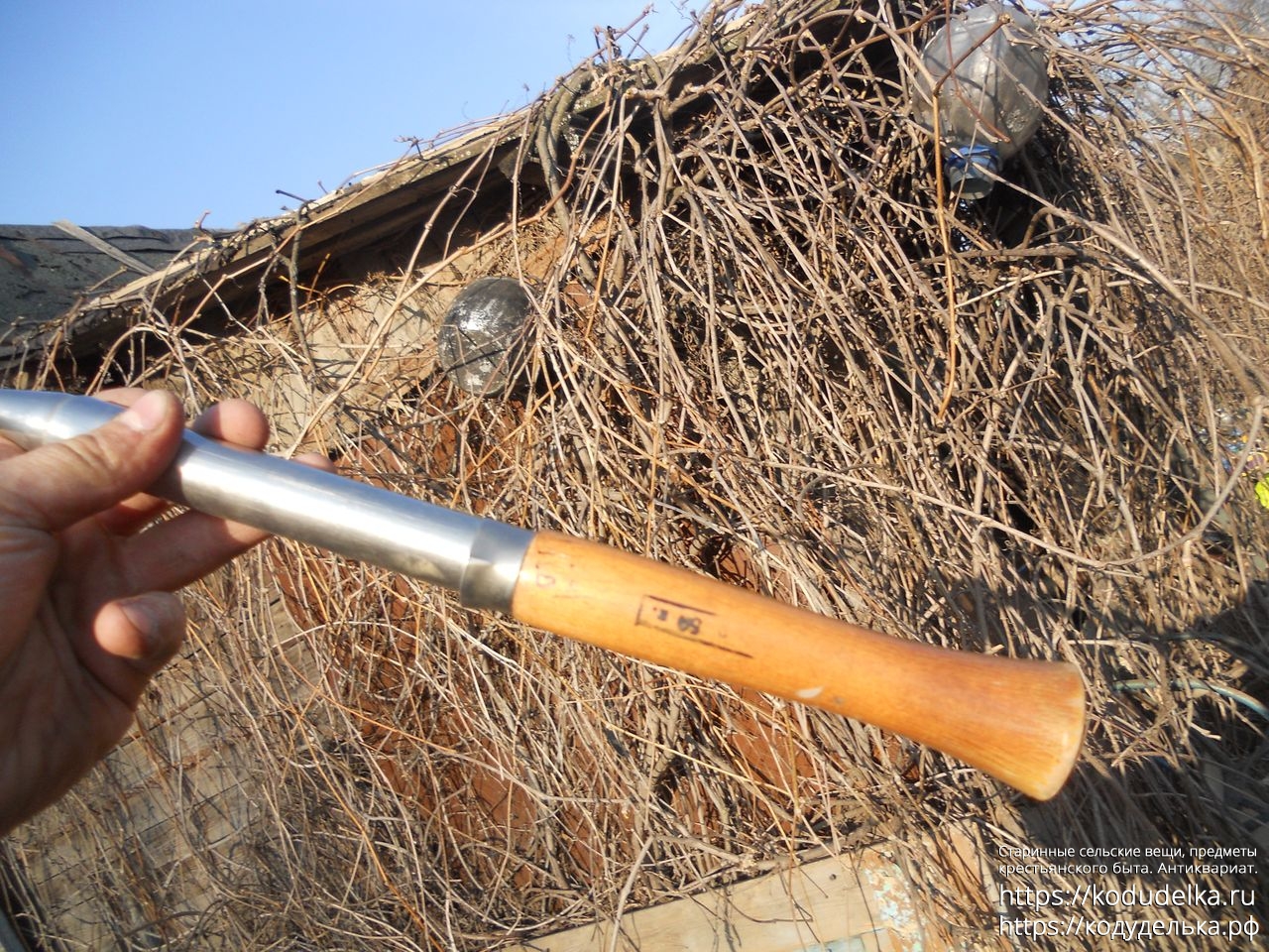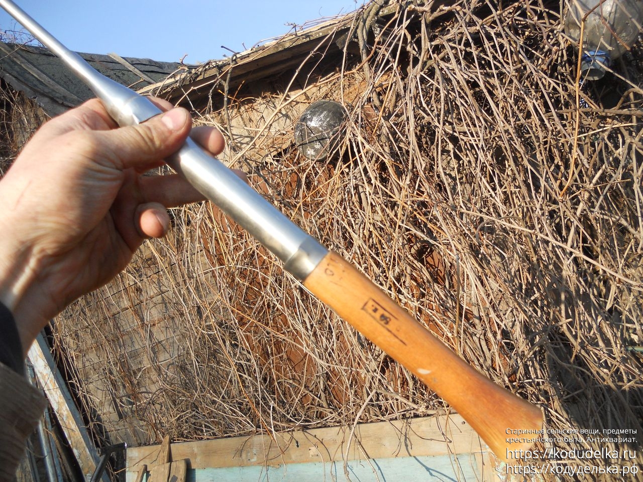 С деревянной ручкой, на которой следы от печати с ценой в копейках.