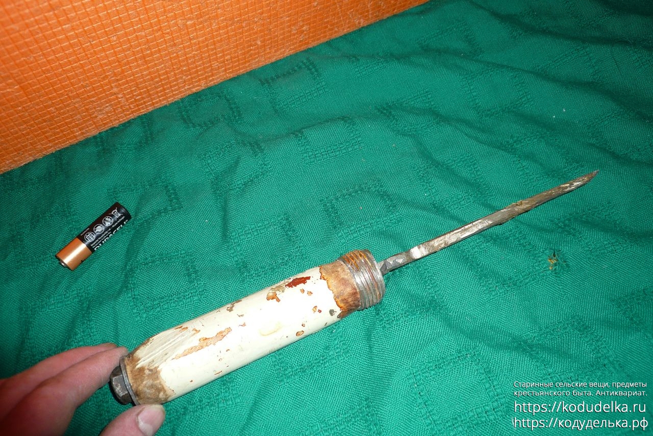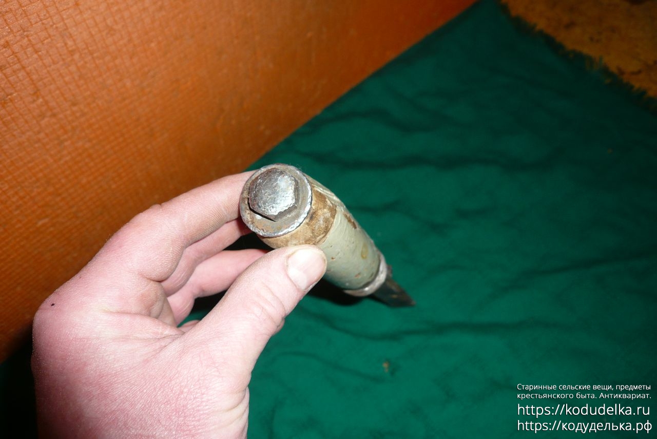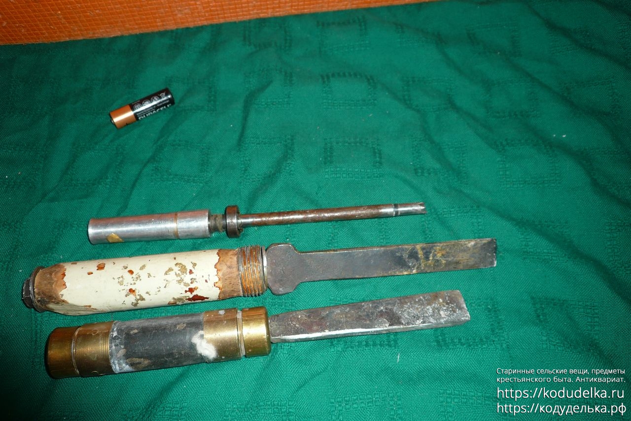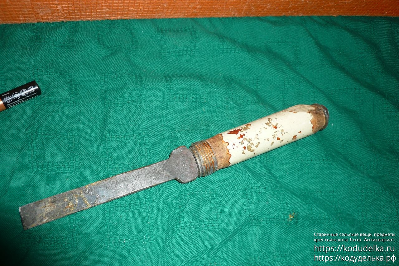 Мне тут больше интересно по ручке — зачем у неё откручивающиеся колпачки (лично моя версия — просто взяли то что было под рукой и сварганили; в целом то же самое качается и второй стамески)