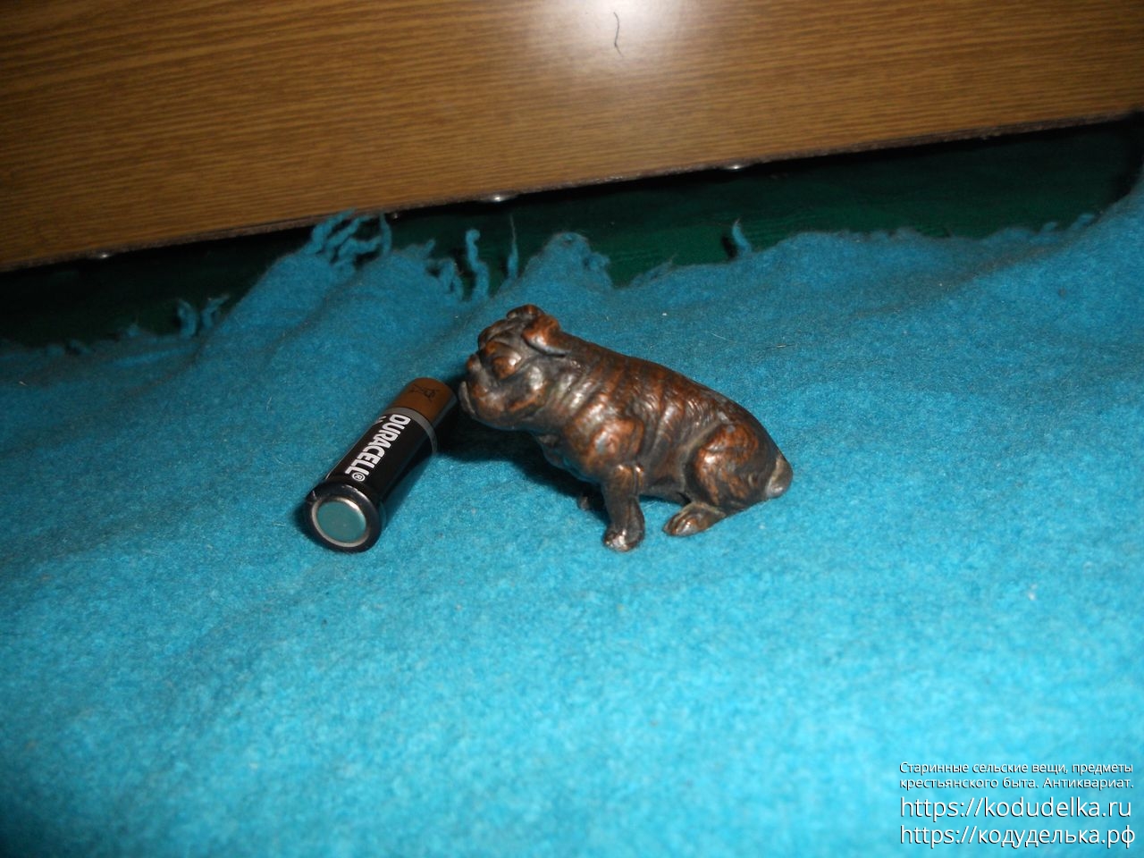Статуэтка собаки — бульдога (или боксёра), из металла — шпиатр, или же дюраль, силумин, с покрытием «под бронзу»