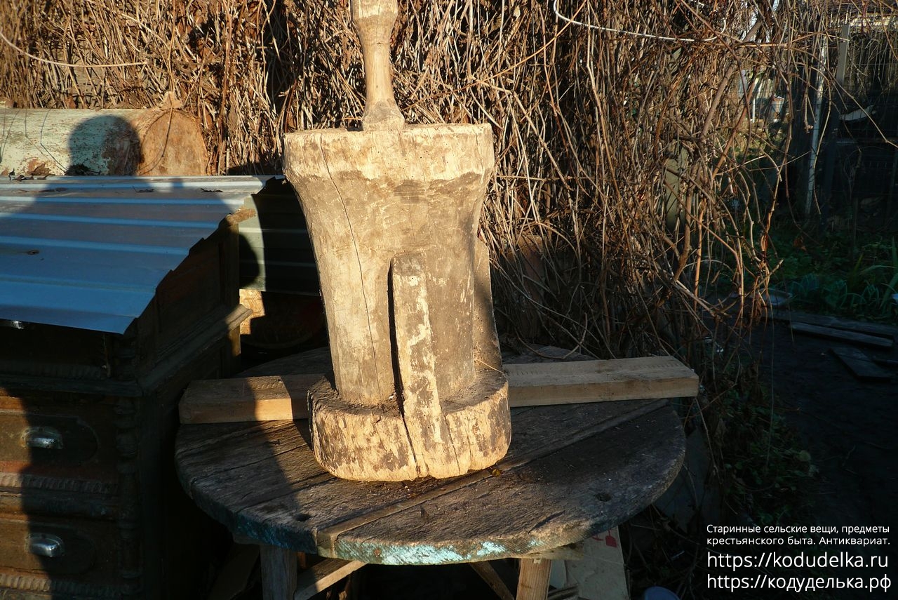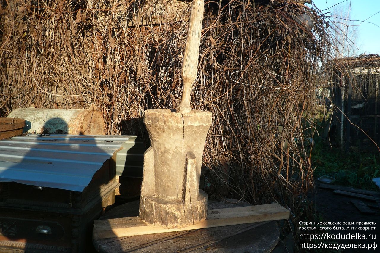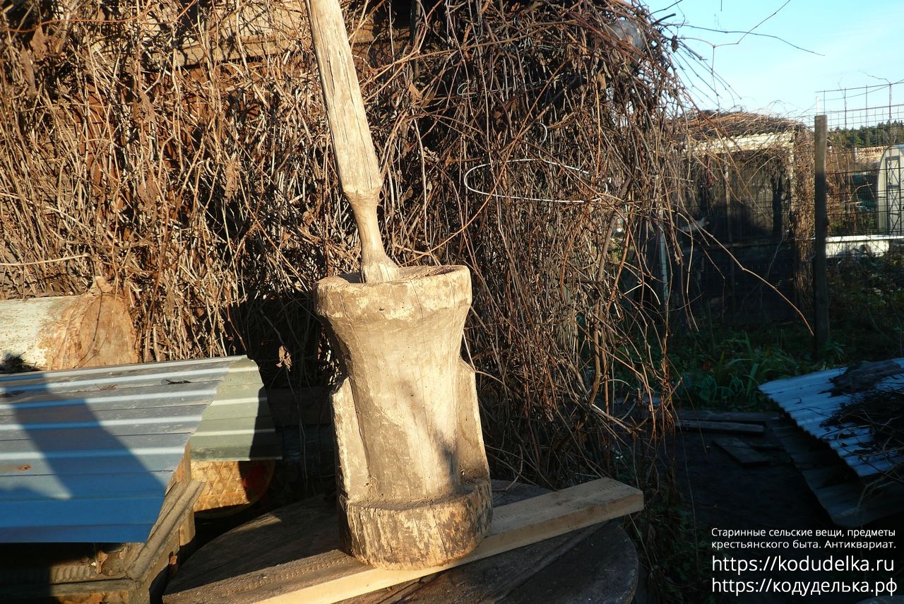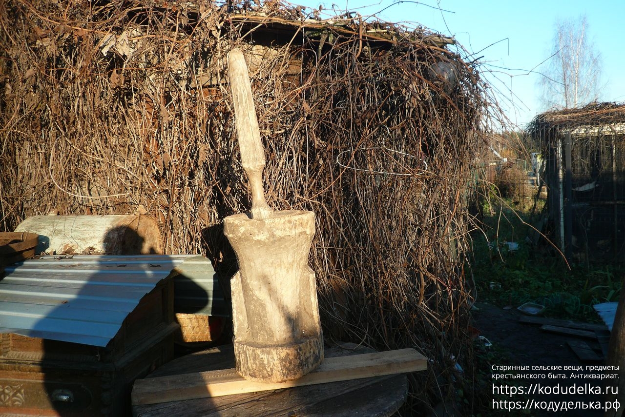 К ступе идёт один пехтиль (пихтиль, пест, толокуша), для фото взят первый попавшийся, на месте будет возможность выбора из нескольких.