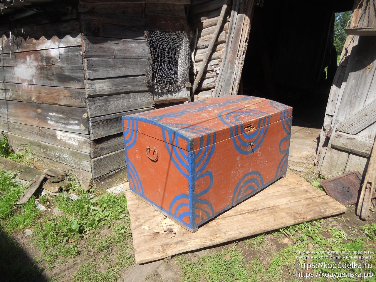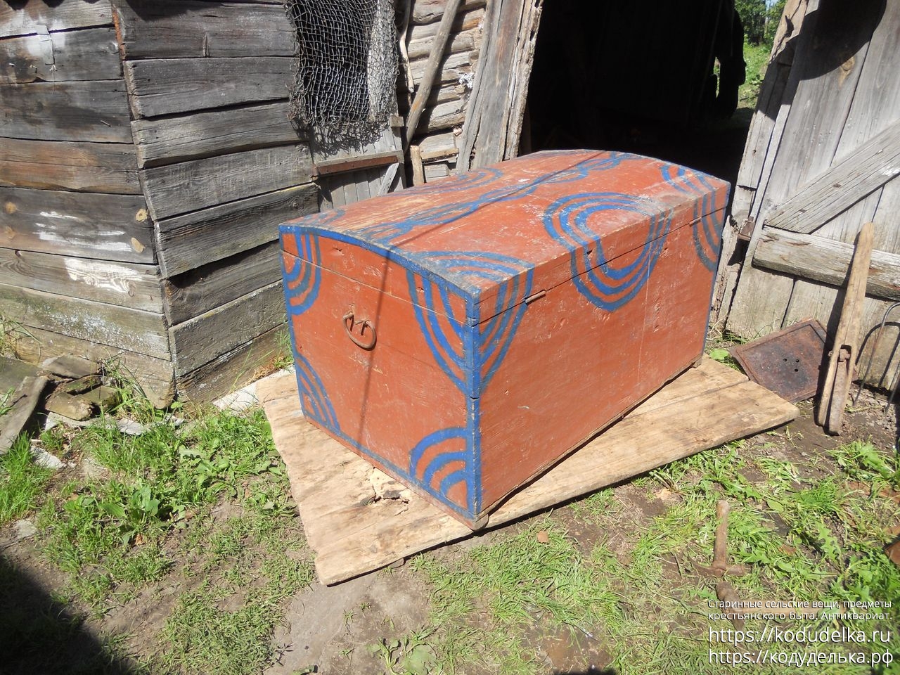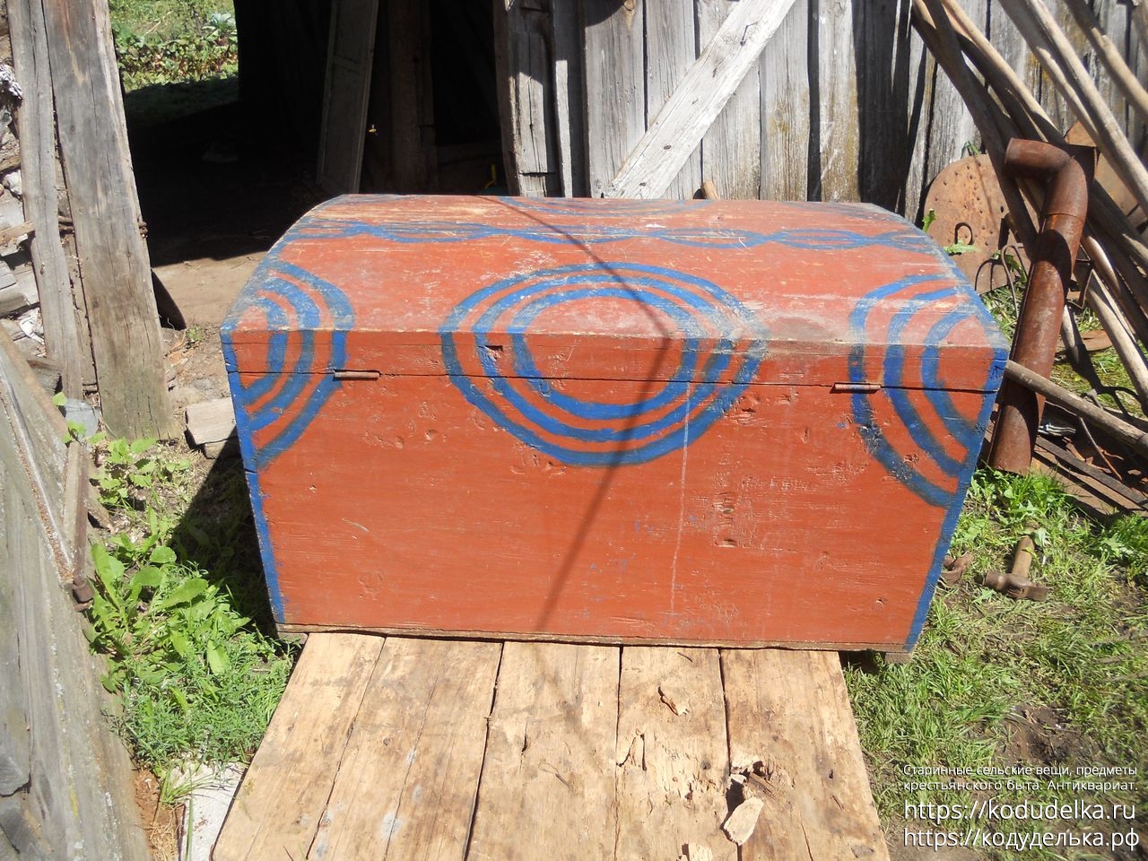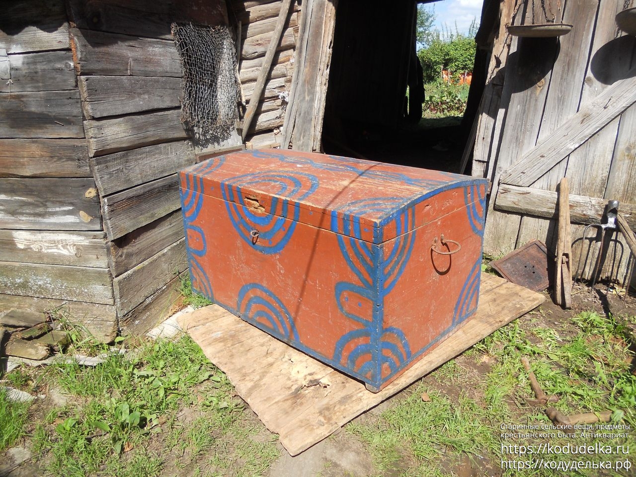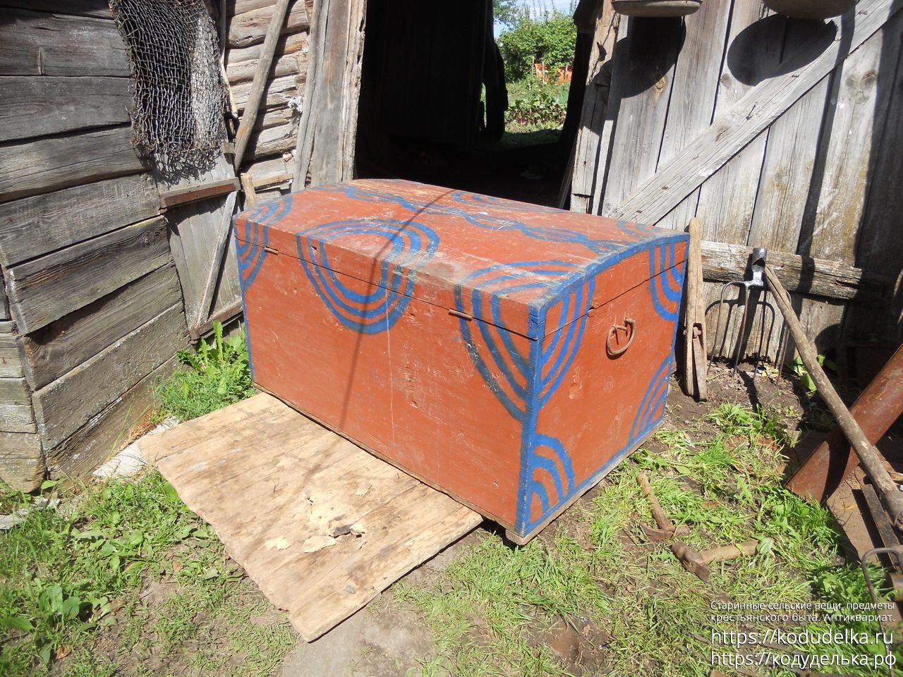 Большой старинный сундук, с сохранившимся оригинальным рисунком.
