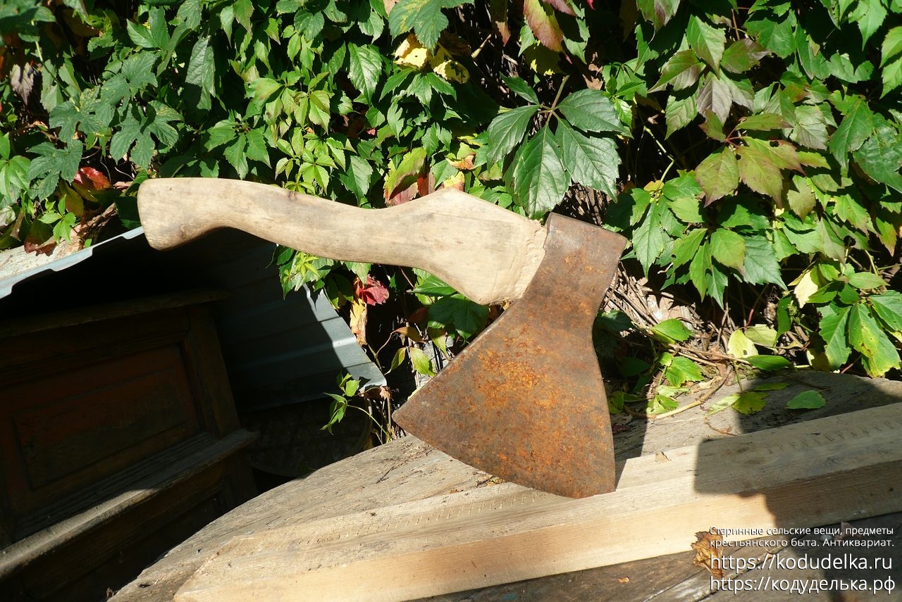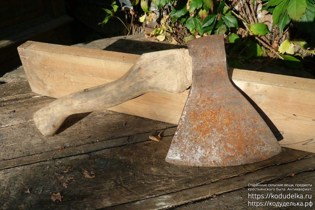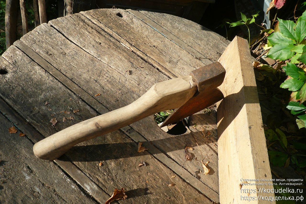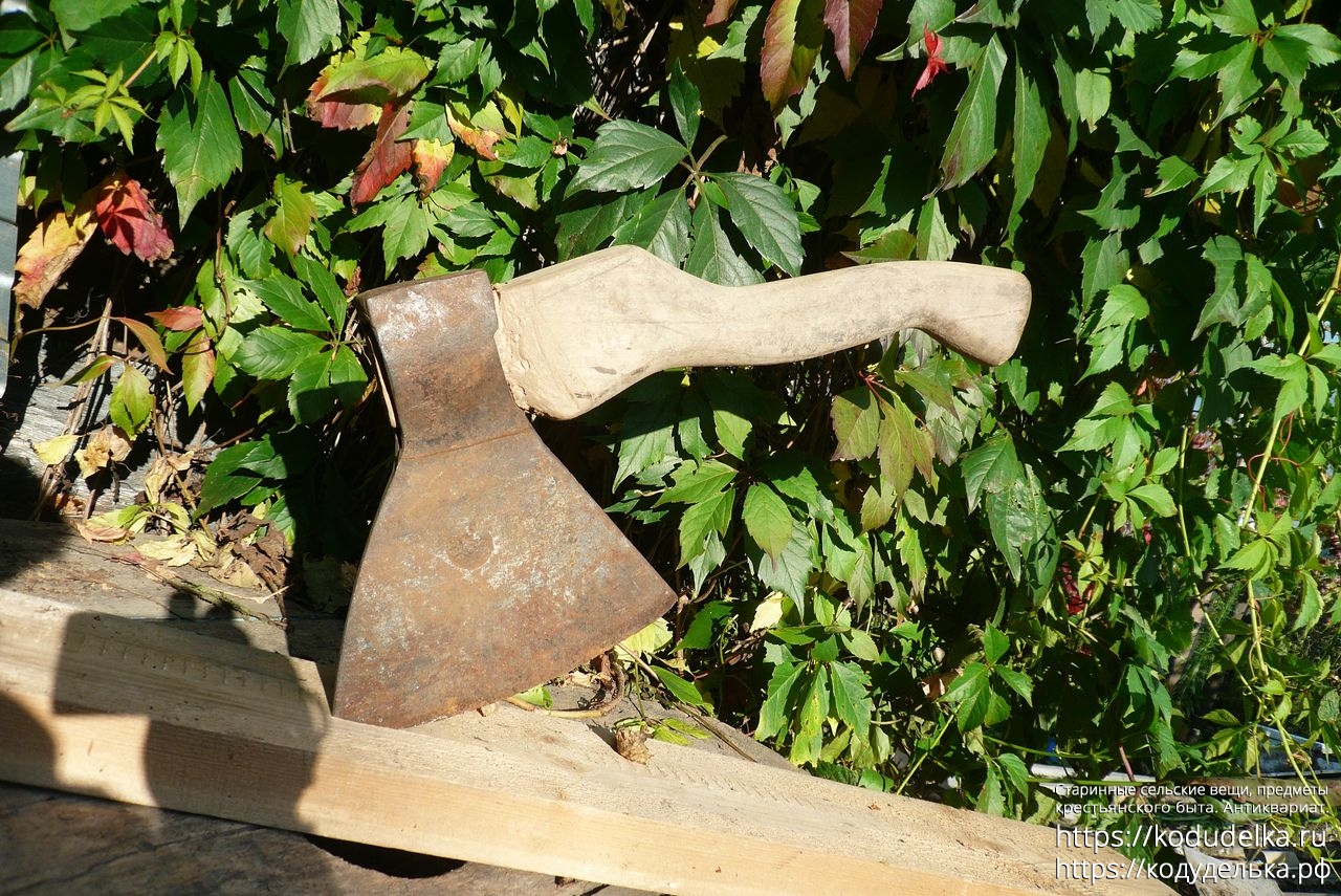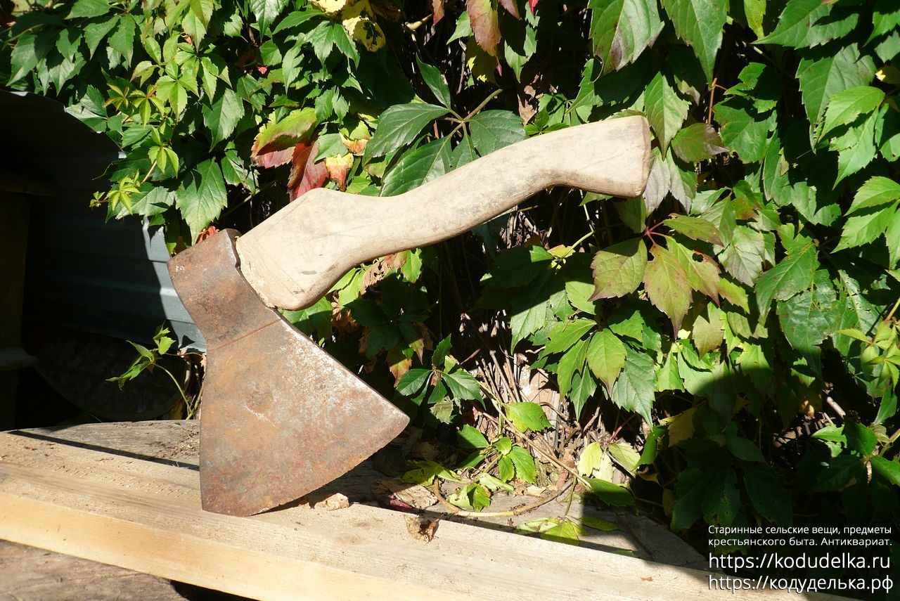 У самого топора трещина на щеке с одной стороны, топорище обстругано на уровне «так себе» — лишь бы влезло — и НЕ расклинено.