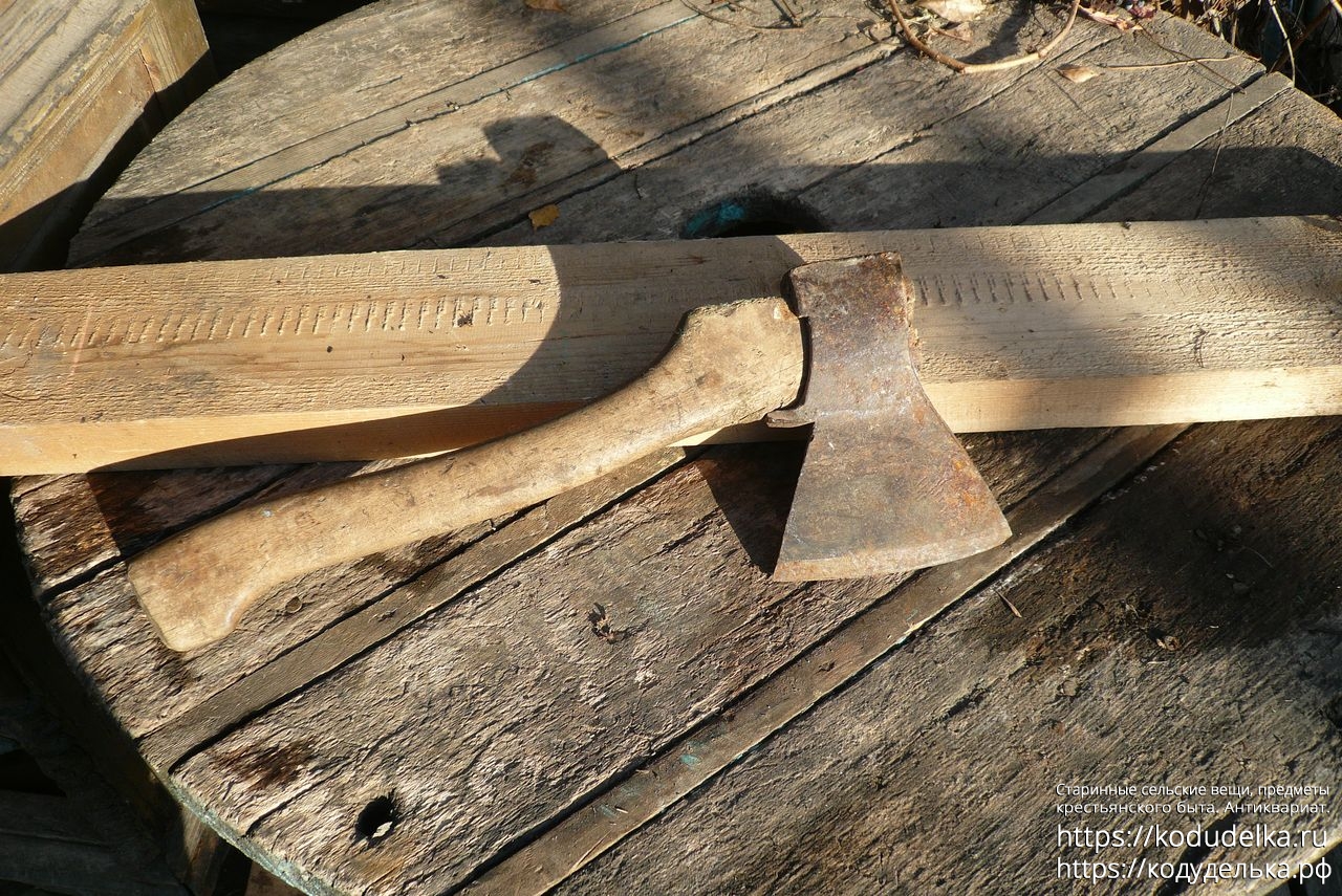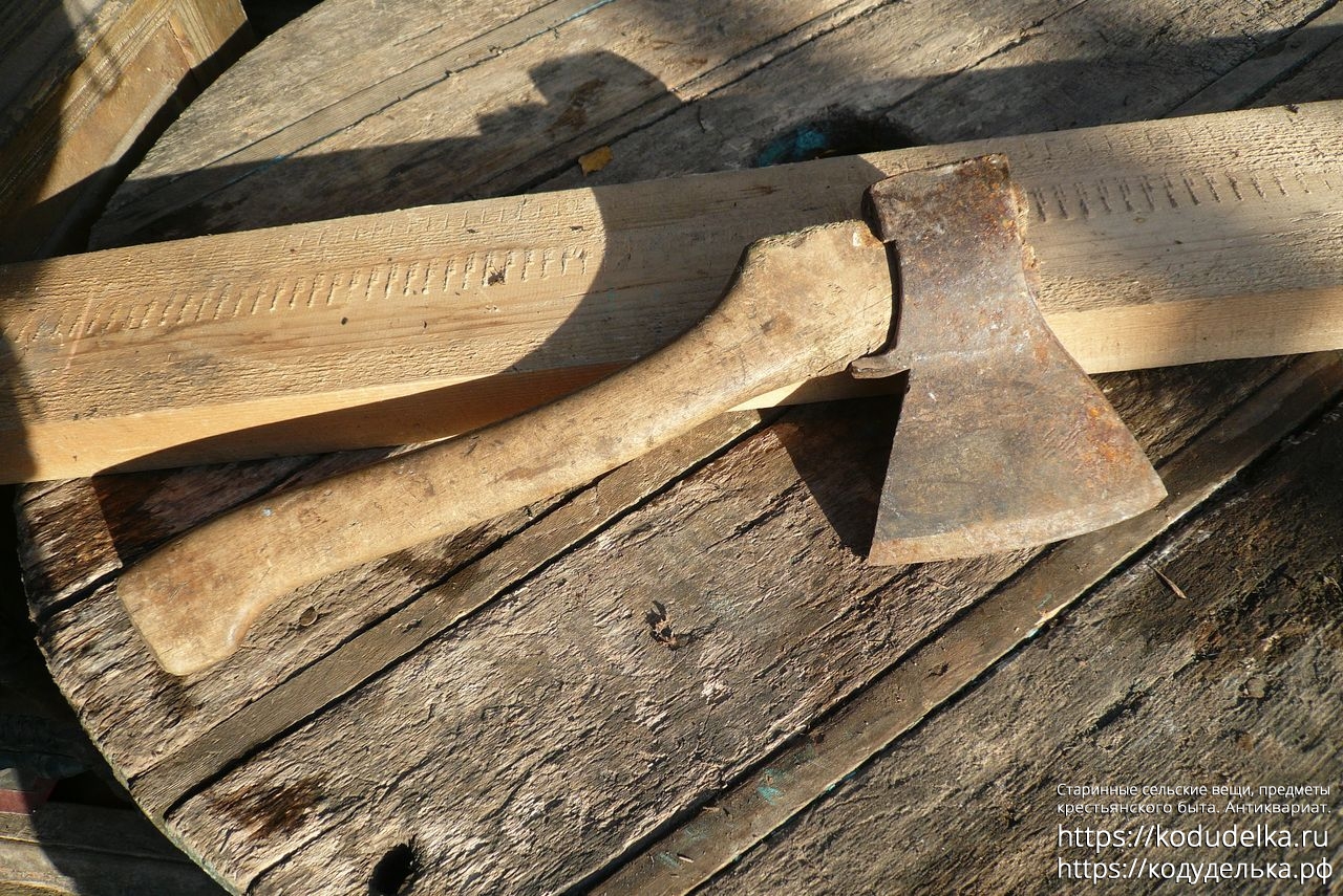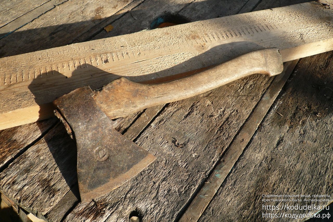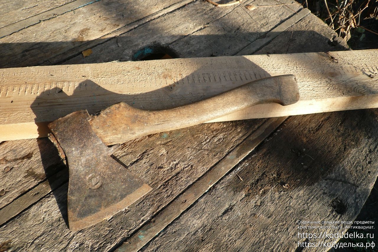 Плотницкий топор с топорищем, расклинен и готов к работе.