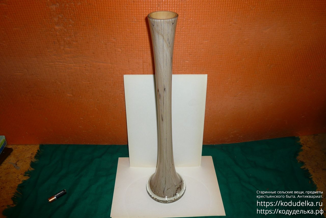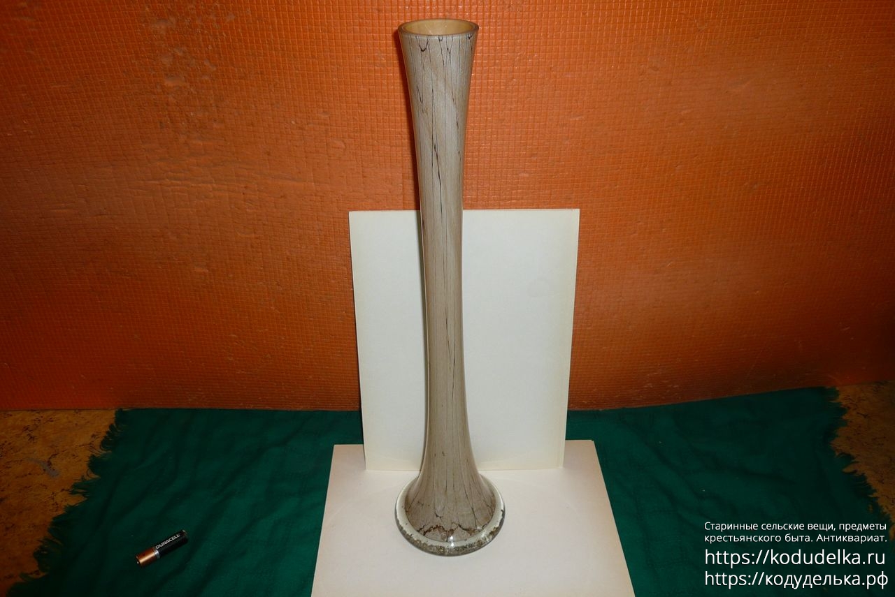 Фактурная дизайнерская ваза цветного стекла в мраморнoм мотивe