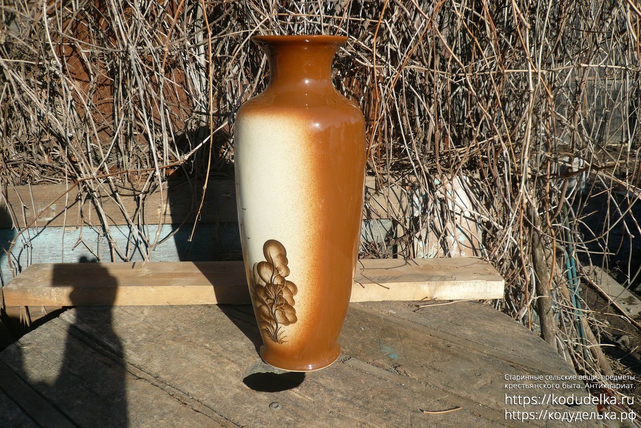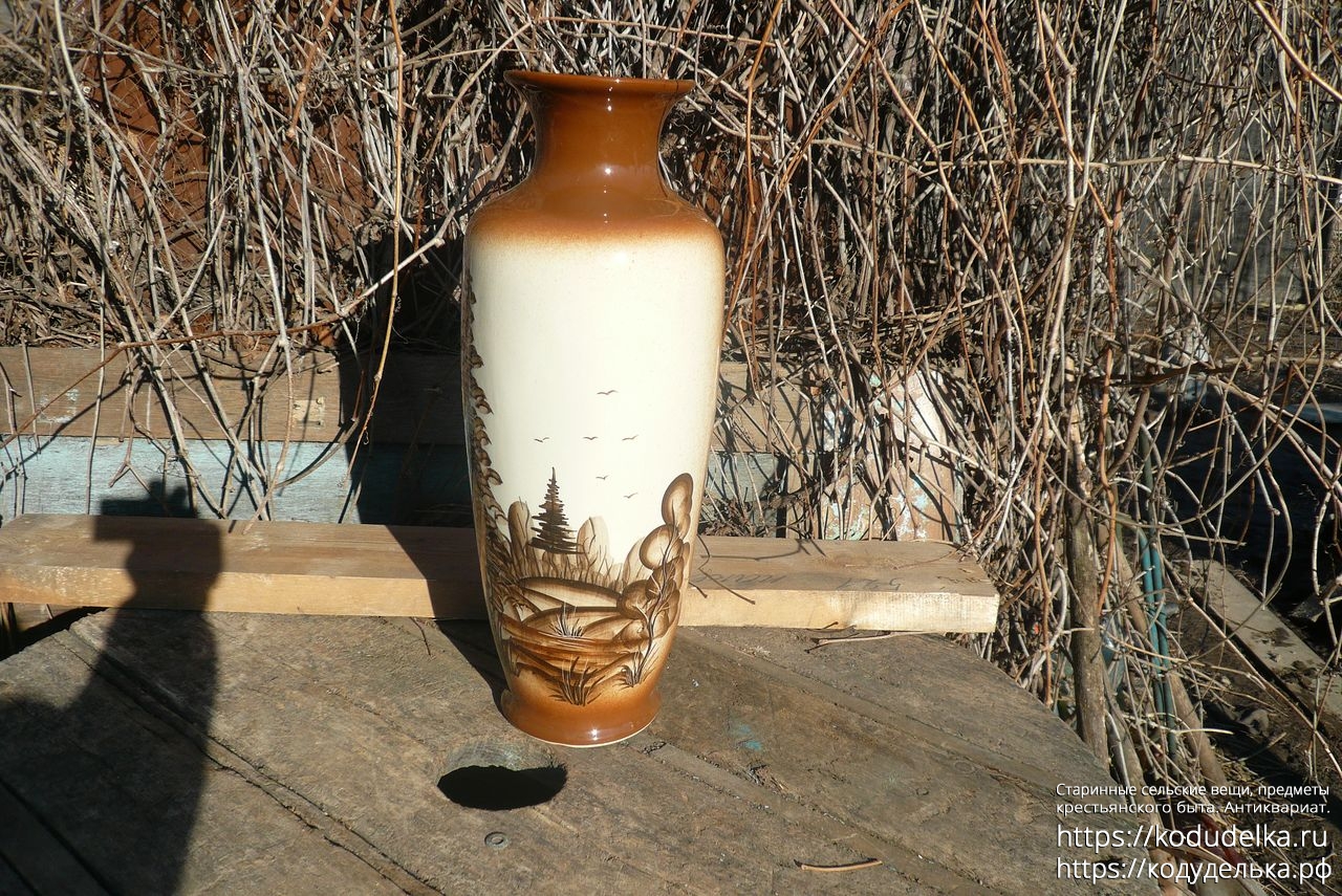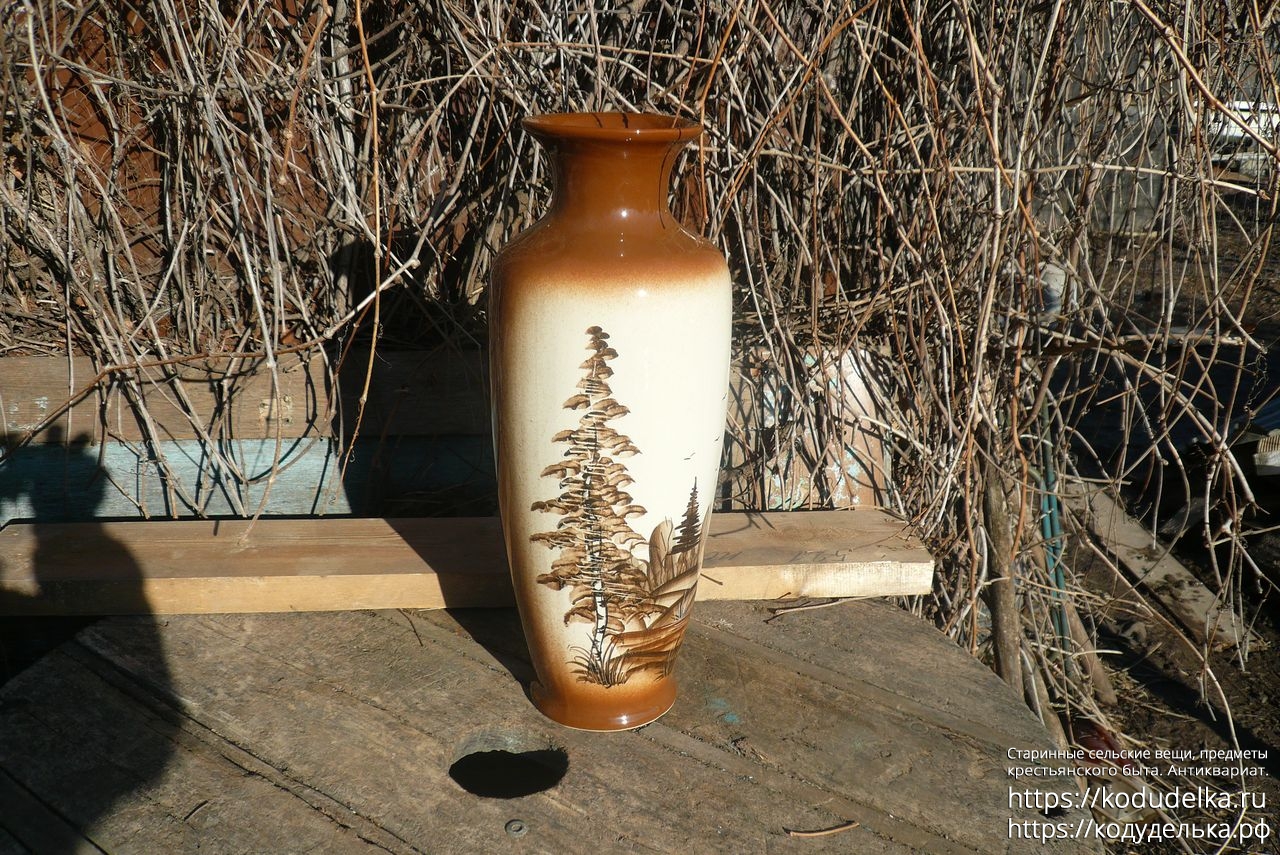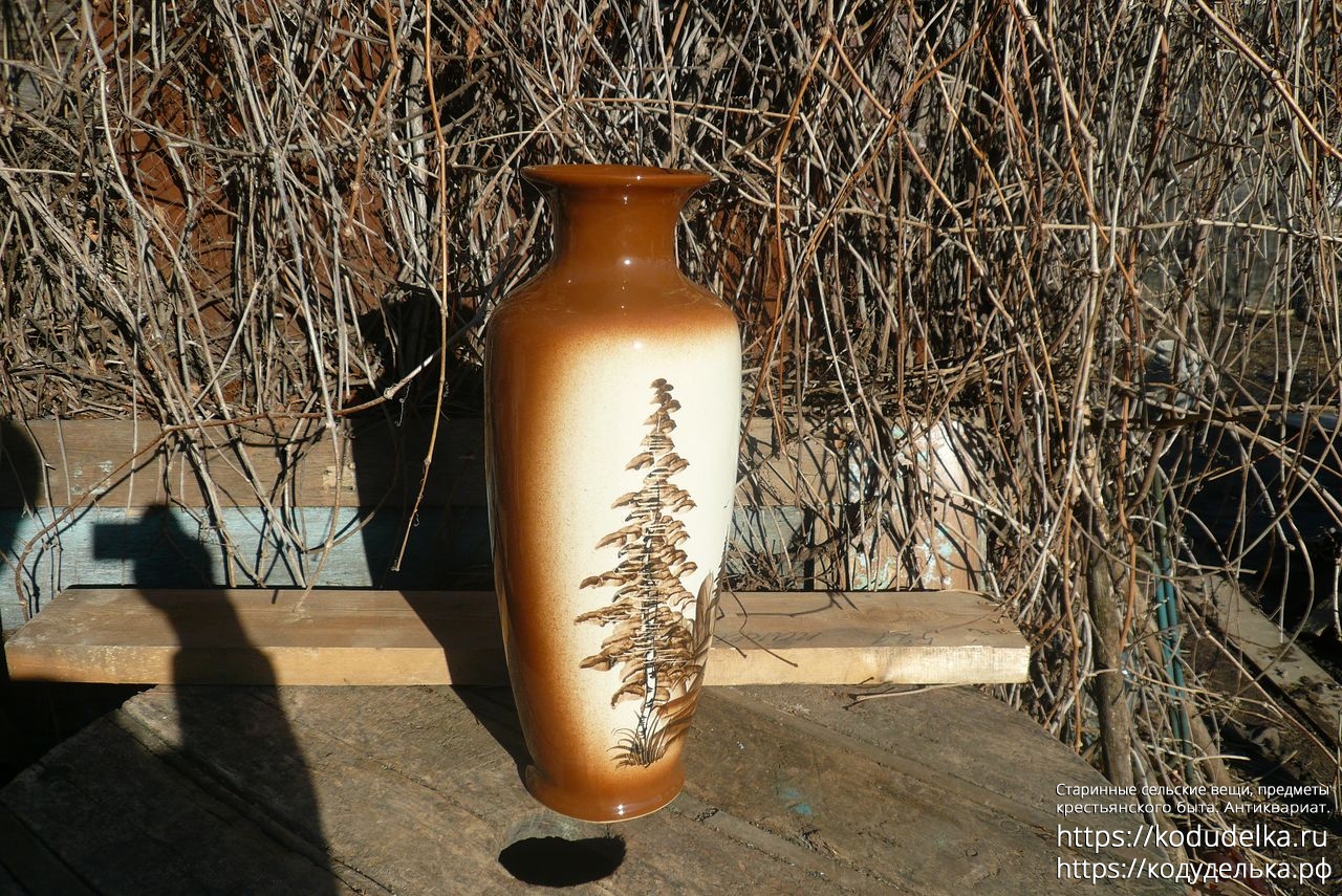 Большая фактурная напольная ваза, с рисунком, обливная керамика.