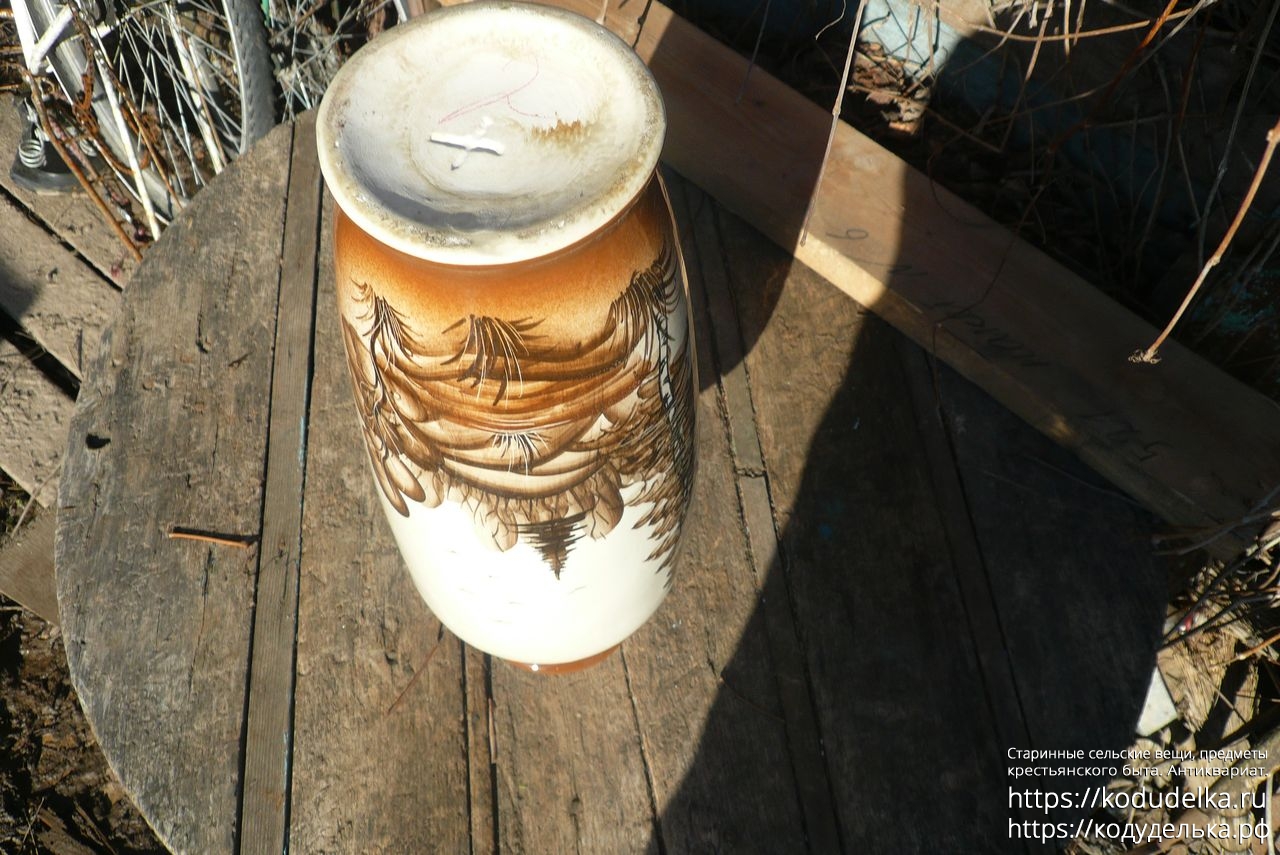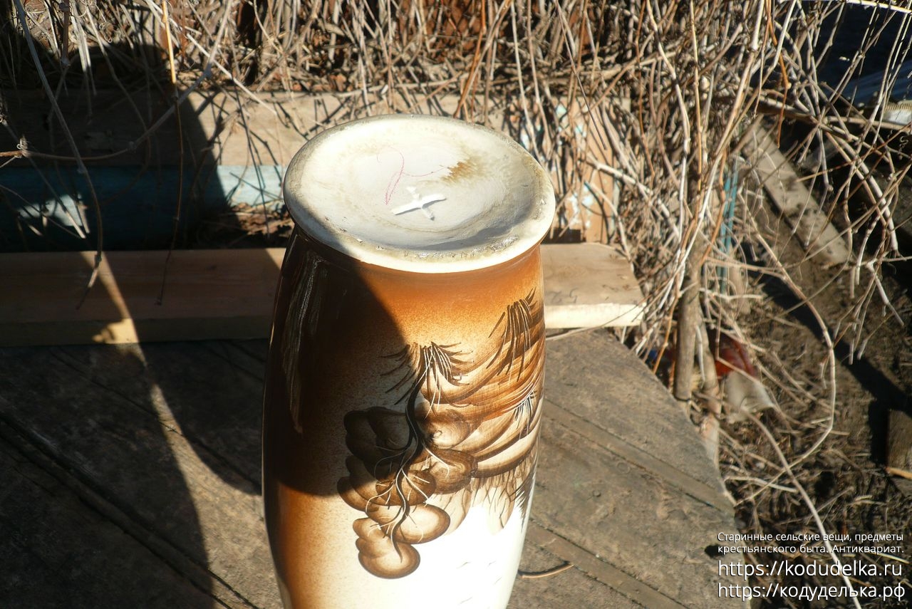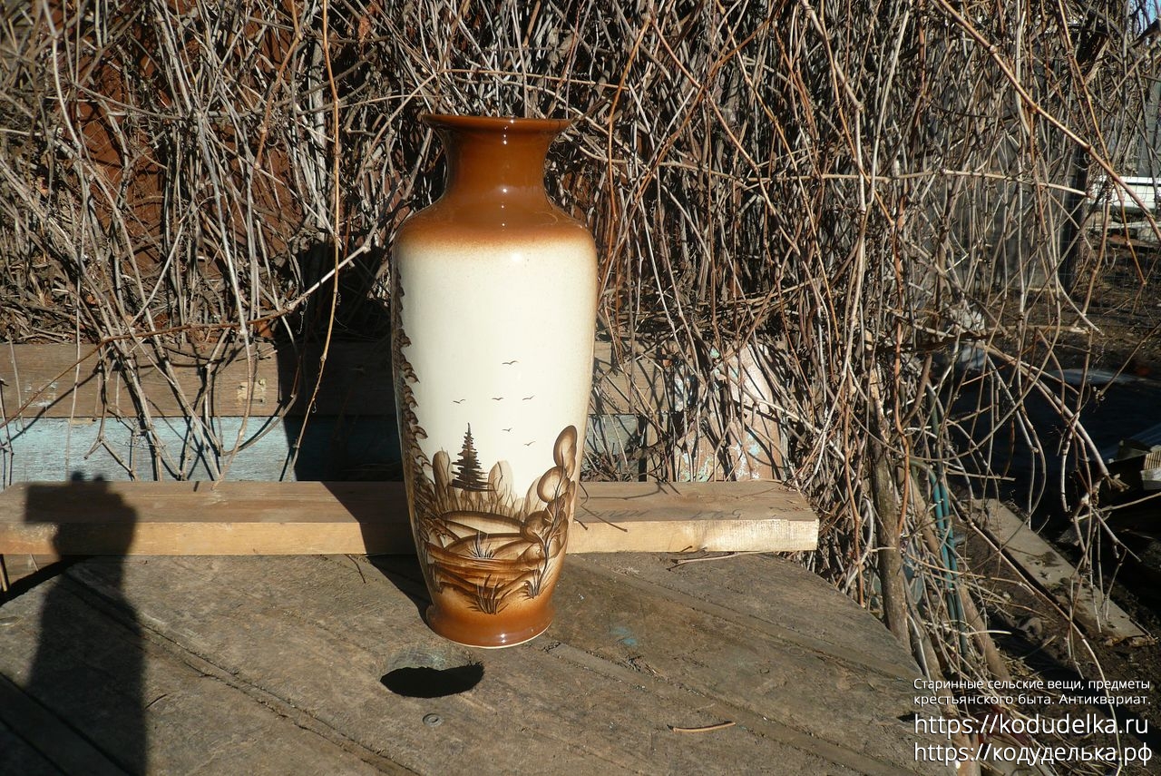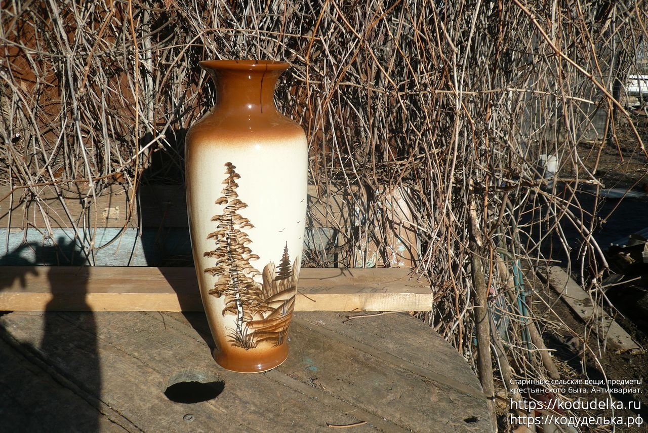 Большая фактурная напольная ваза, с рисунком, обливная керамика.