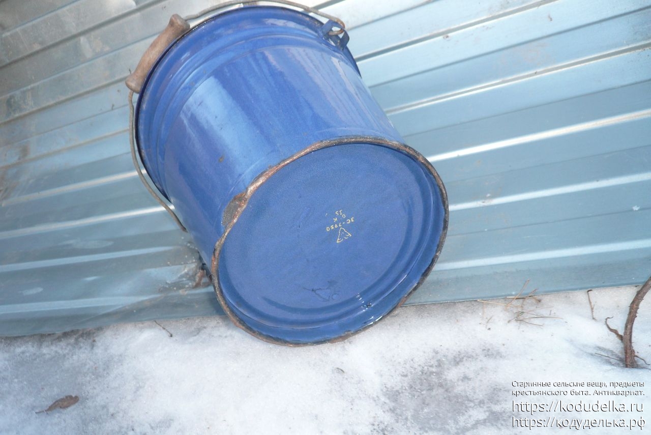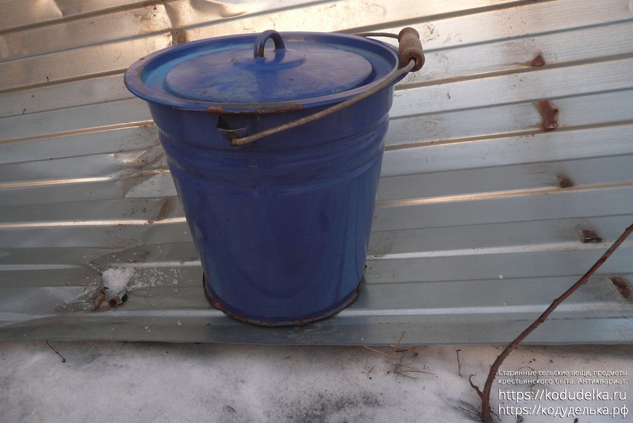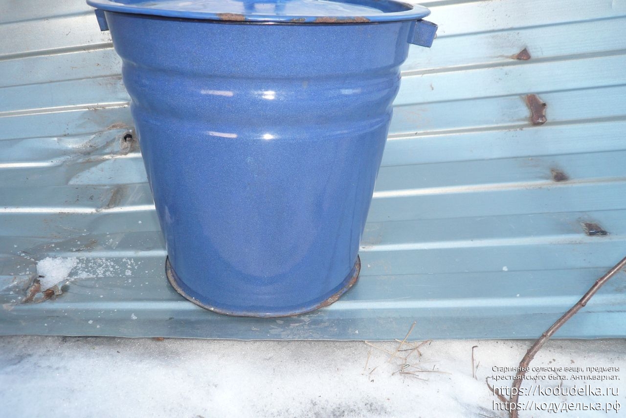 Эмалированное ведро, возможно СССР (?), предположительно на 15 литров (точный объём можно будет проверить с началом календарной весны, в марте-апреле 2025).
