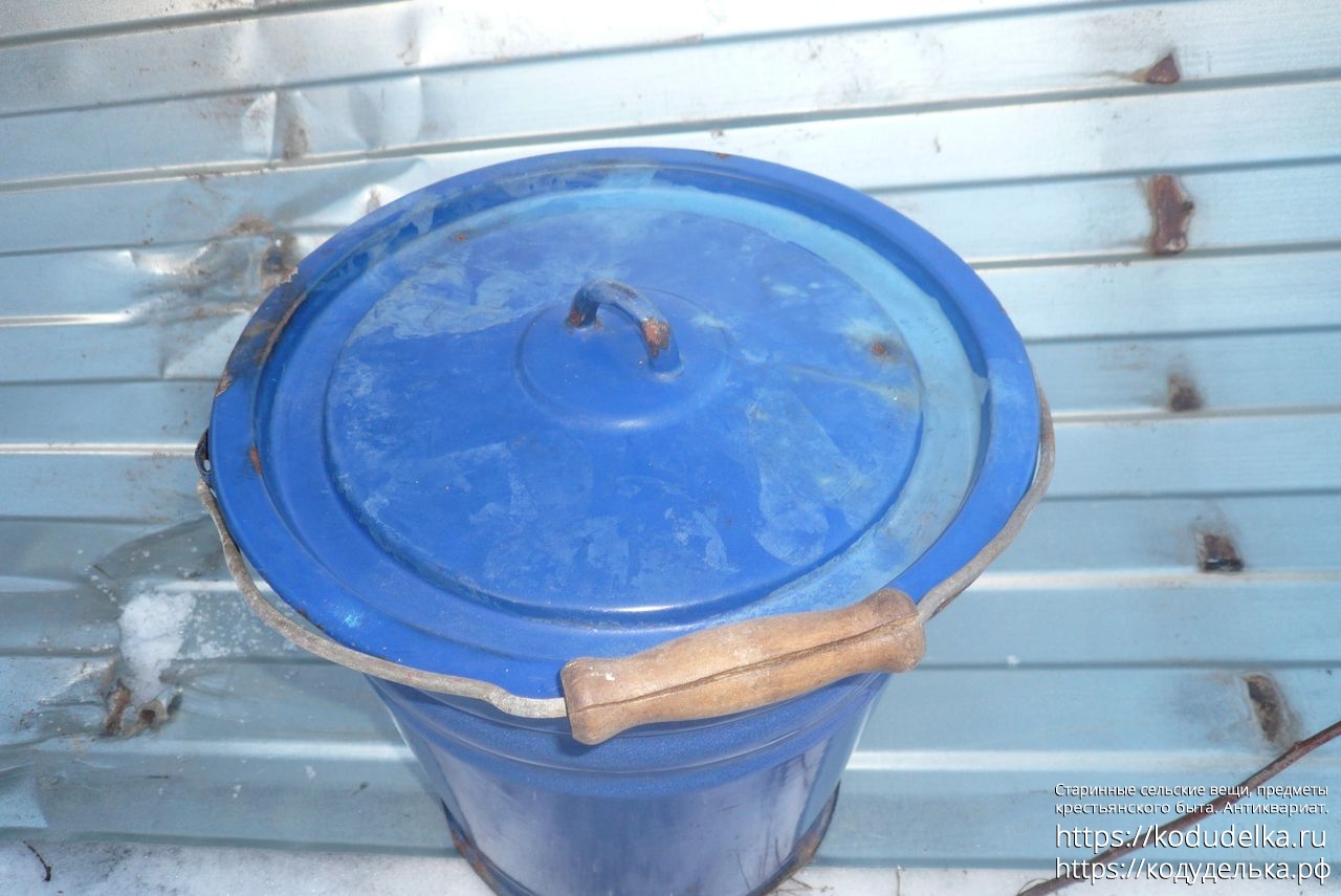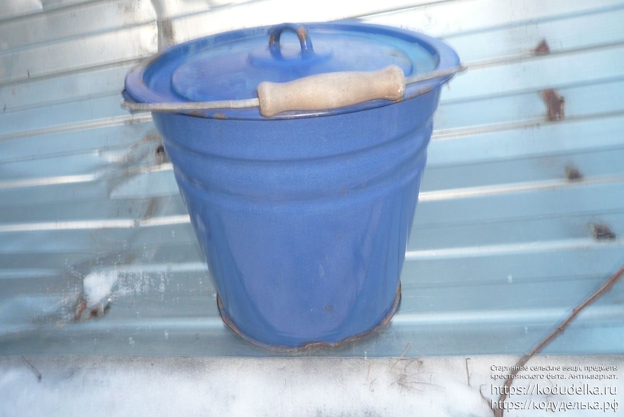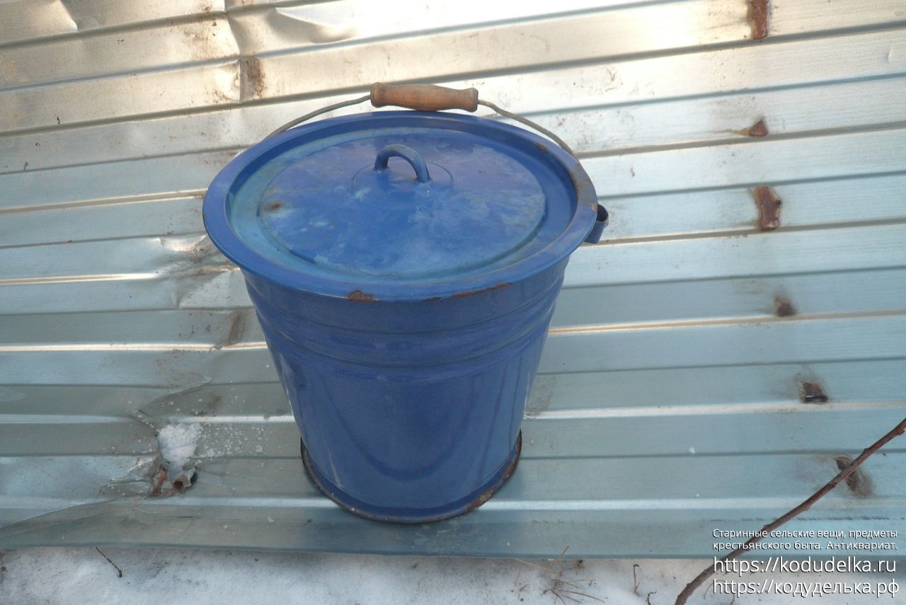 Эмалированное ведро, возможно СССР (?), предположительно на 15 литров (точный объём можно будет проверить с началом календарной весны, в марте-апреле 2025).