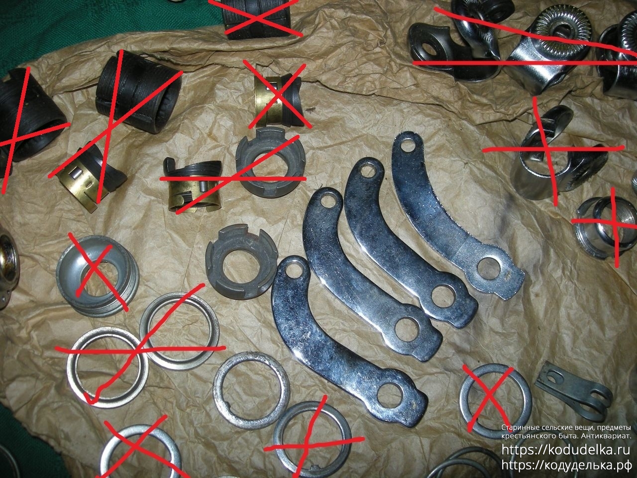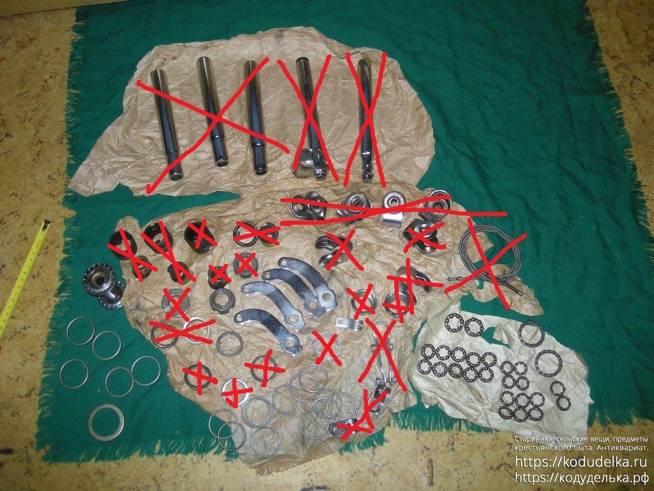 Детали от втулки торпедо. Выглядят хорошо. Но почему втулки не лежали в сборе в промасленной бумаге? Непонятно. Зачем разъединены элементы (и куда делись цилиндрические подшипники) — тоже непонятно.