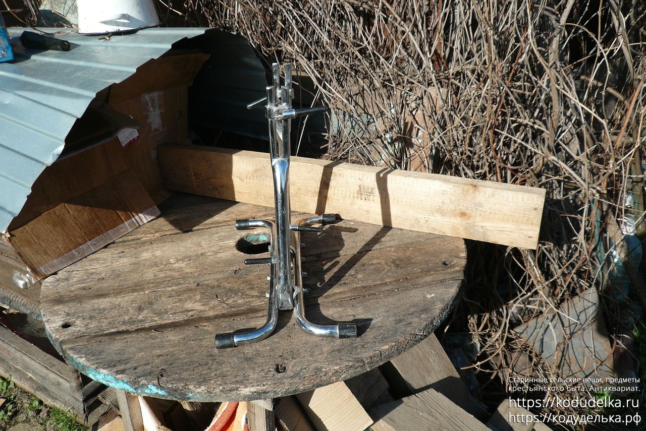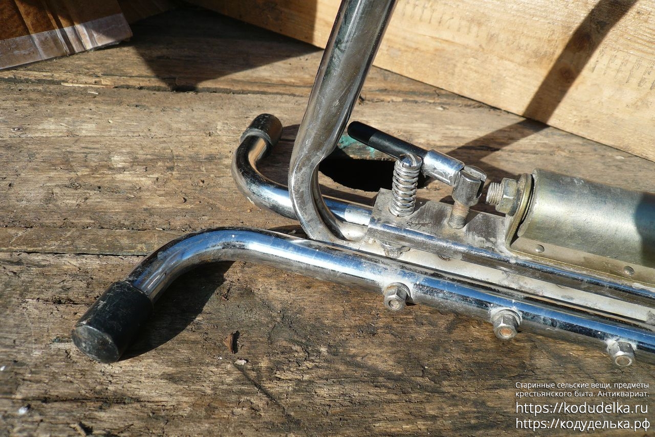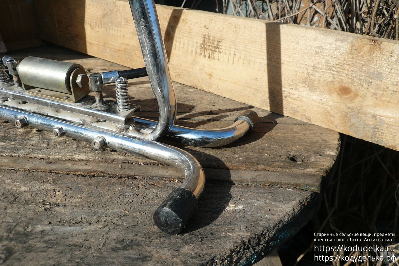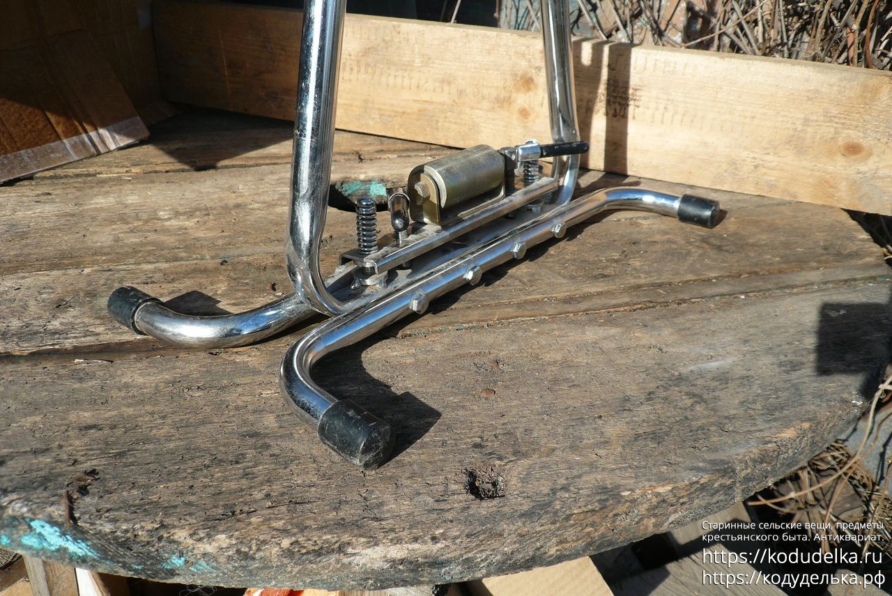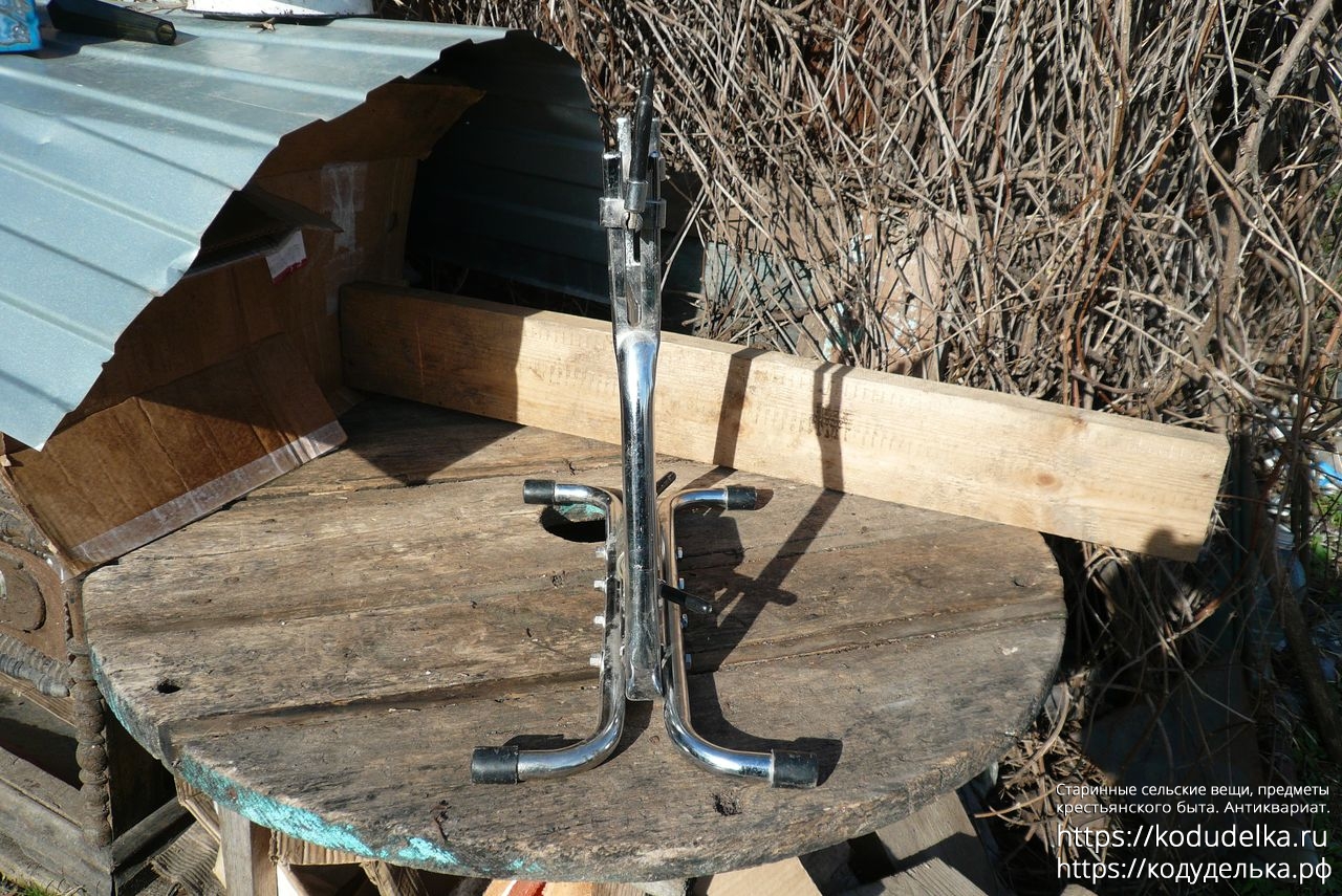 Состоит из хромированной (?) стальной рамы с регулируемыми креплениями для оси колеса.