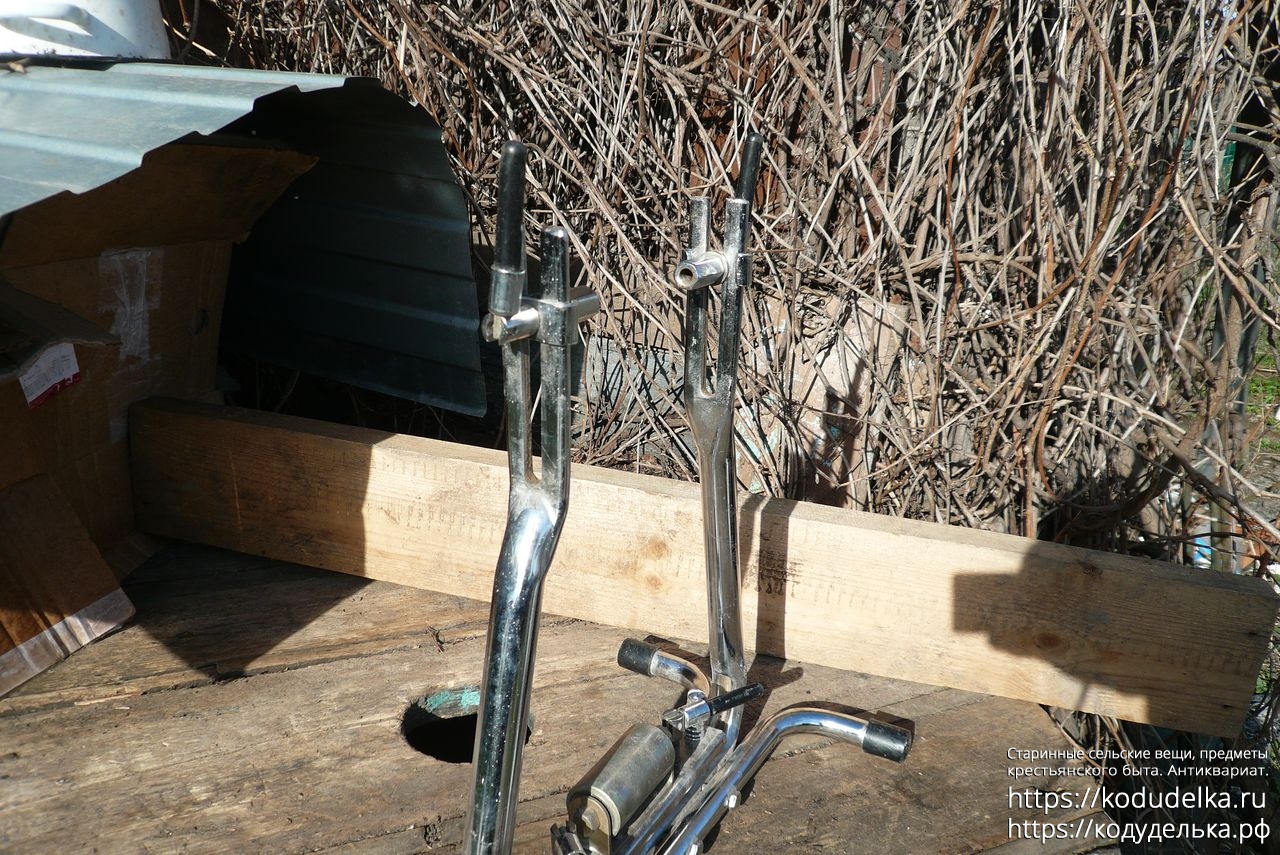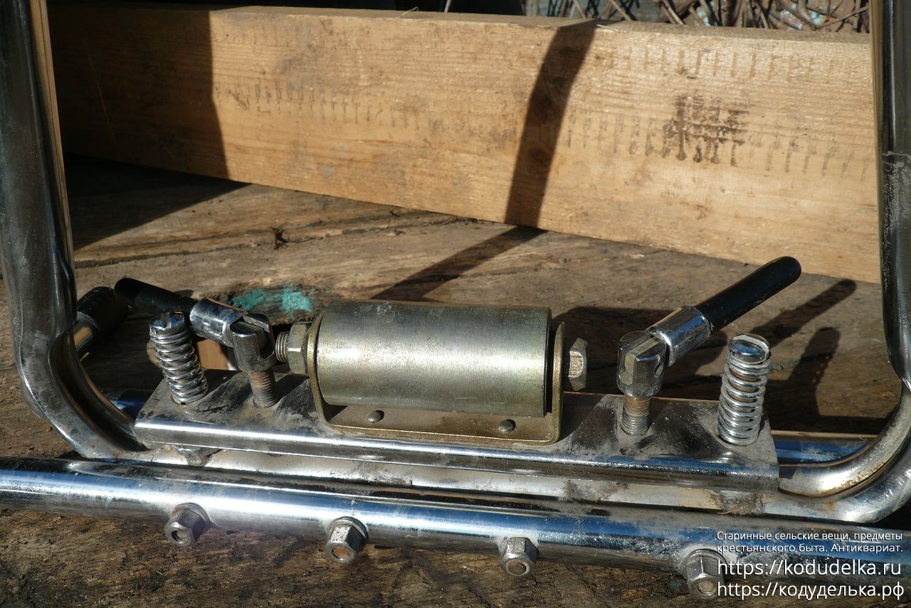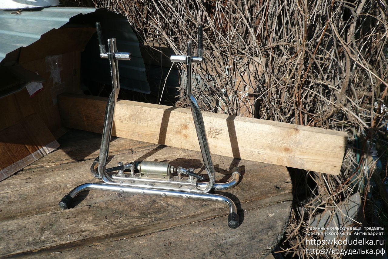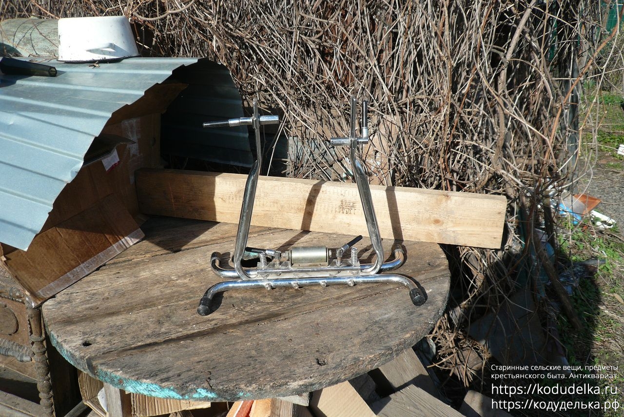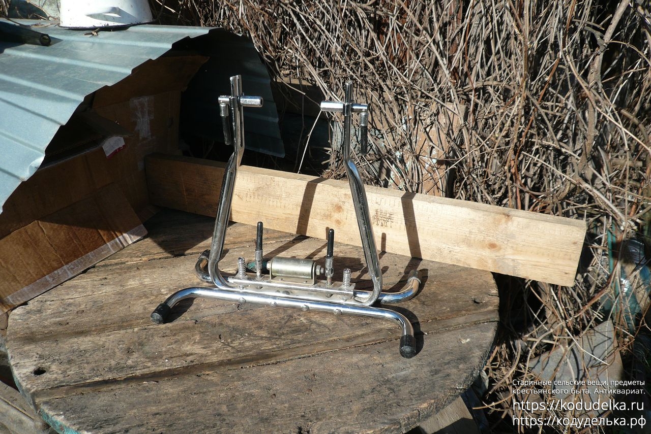 Состоит из хромированной (?) стальной рамы с регулируемыми креплениями для оси колеса.