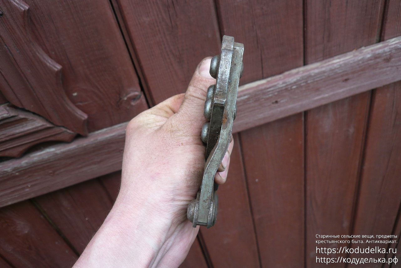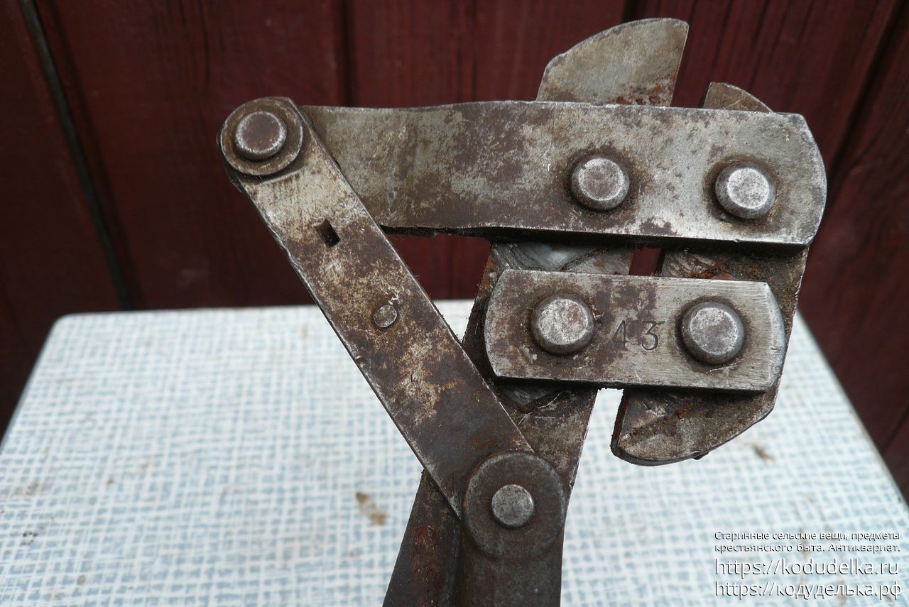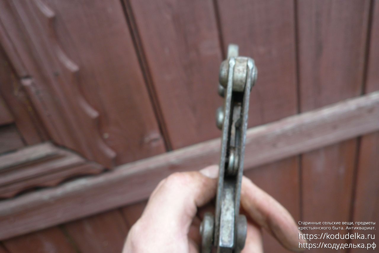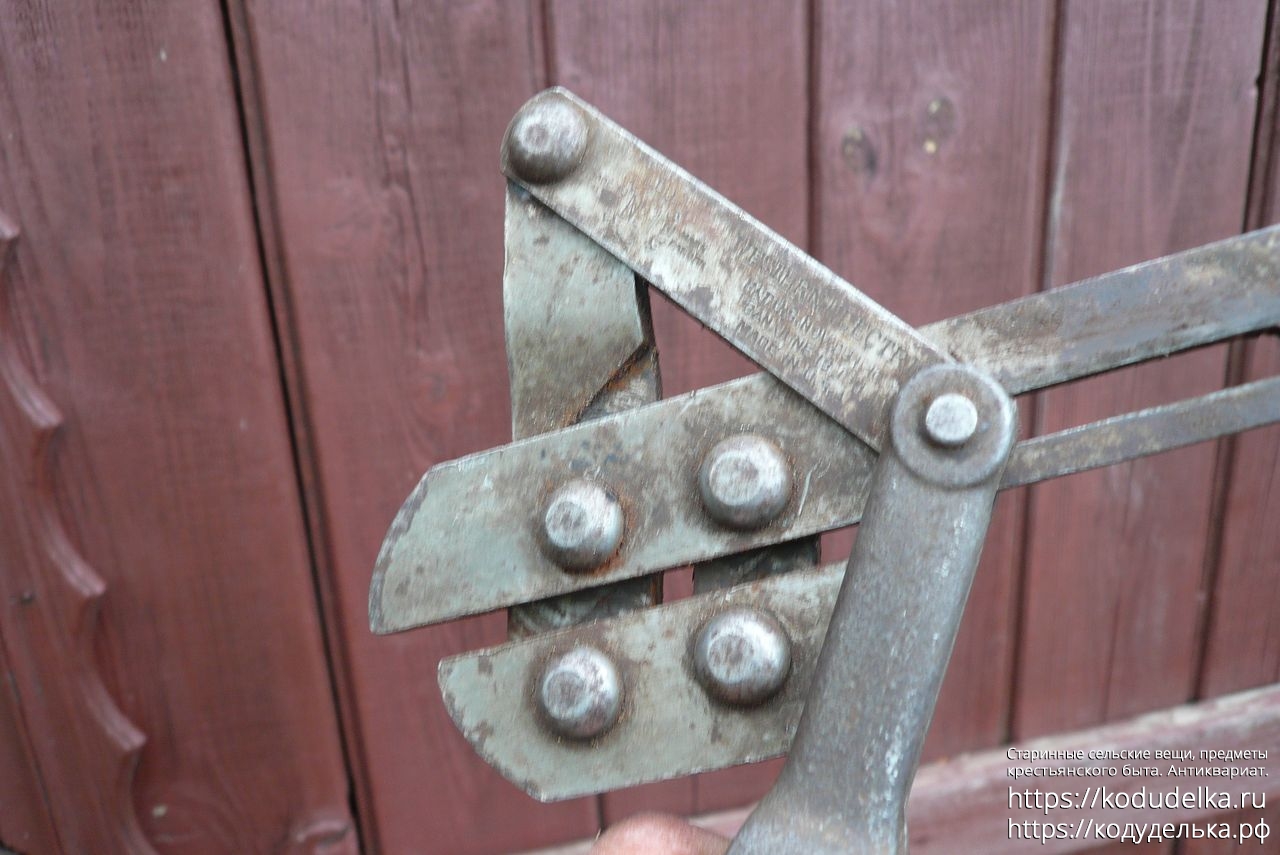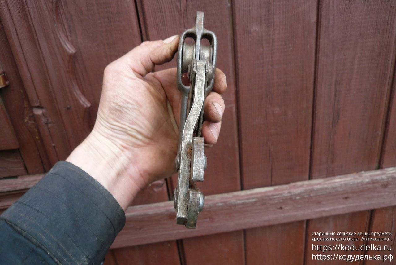 Максимально похоже это на современный монтажный зажим «лягушка», или же лапка для протяжки проволоки. Визуально — очень похоже, только на современных нет валиков в «рукоятке». В любом случае очень похоже на то, что эта штука для работы с кабелем или иной проволокой.