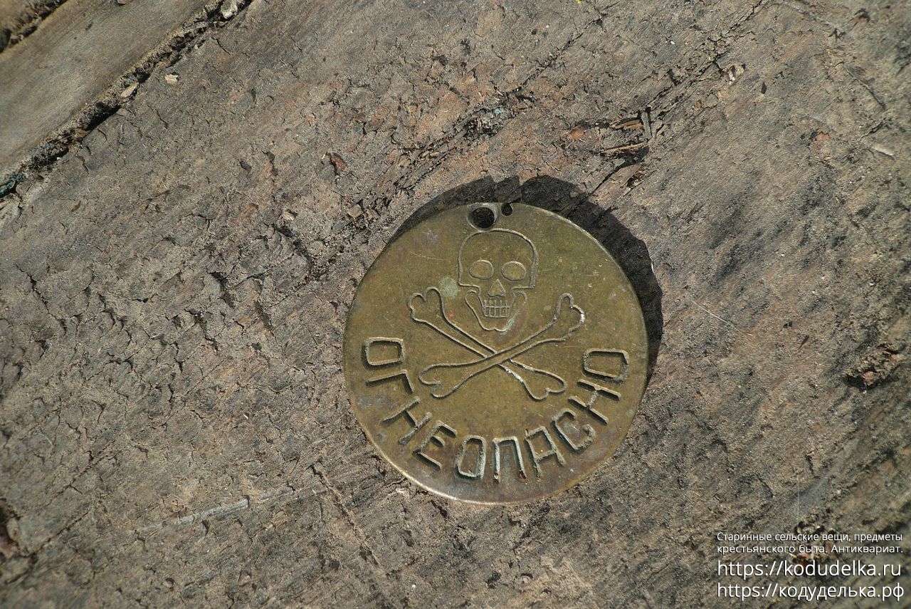 На одной стороне надпись: Огнеопасно, и череп и с костями.